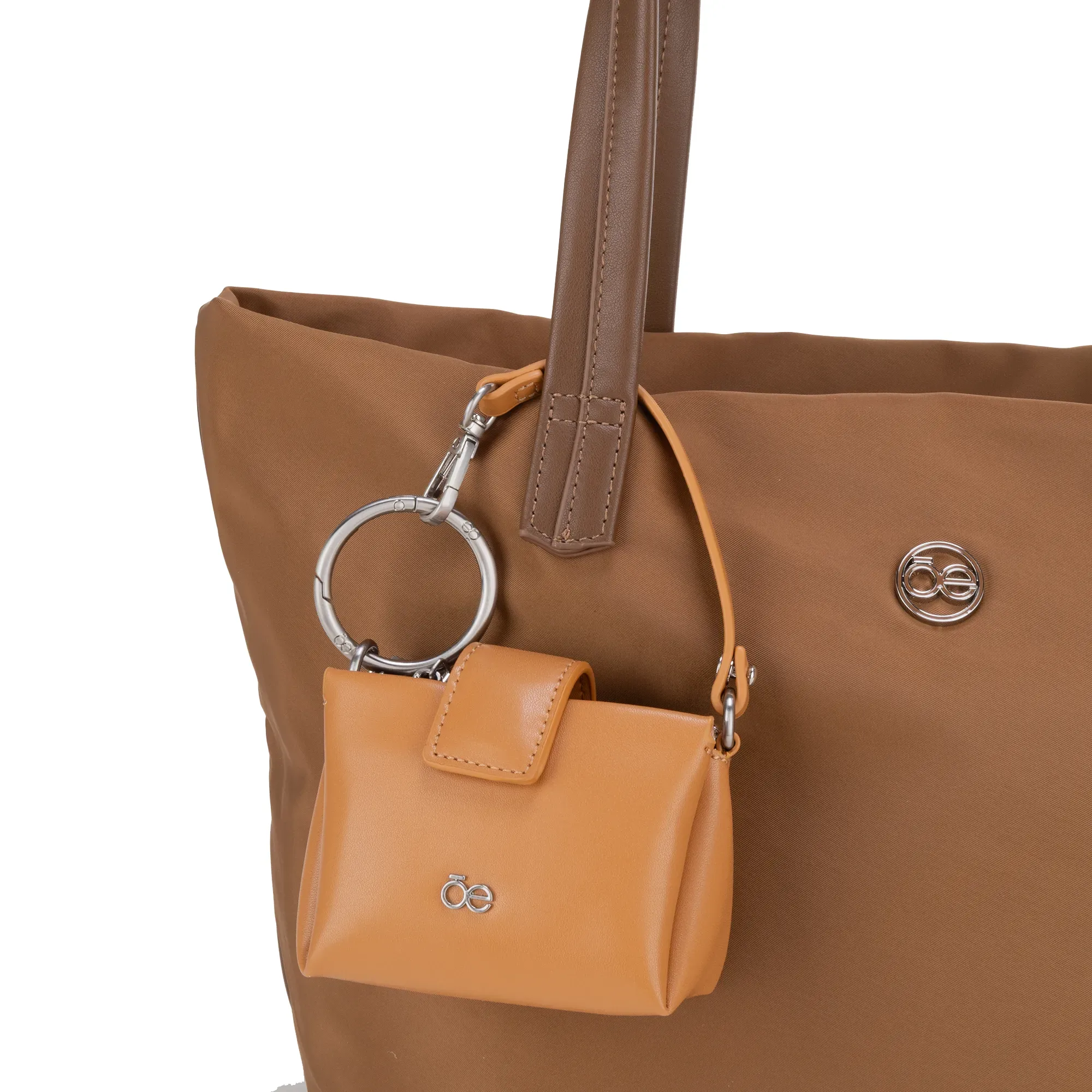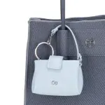 Charm desprendible de bolso satchel hecho con material vegano apariencia piel. Cuenta con cierre metálico de larga duración. Tiene herraje metálico de monograma. Capacidad ultra pequeña de almacenaje.