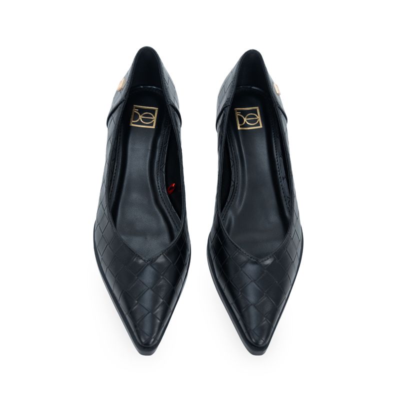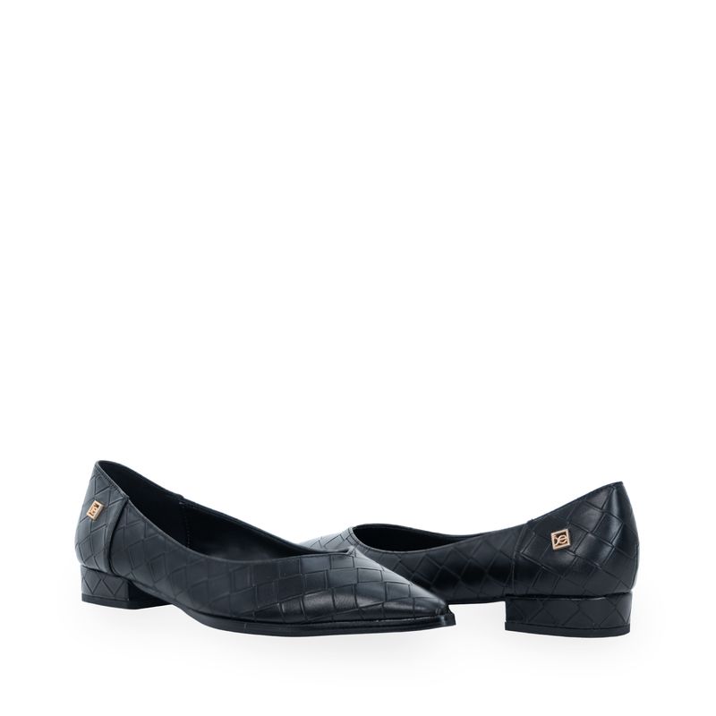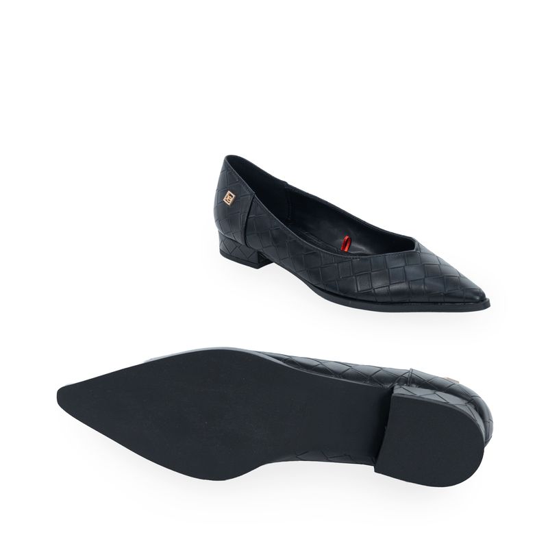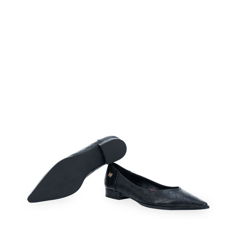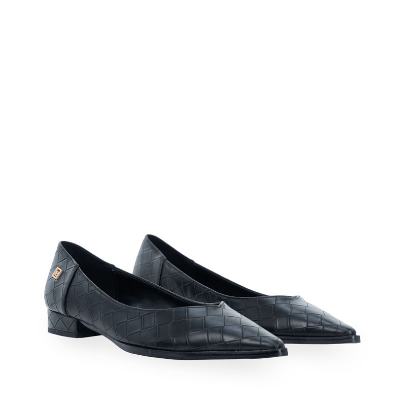 Balerina hecha con material vegano apariencia piel look tejido. Cuenta con diseño puntal de alta tendencia. Cuenta con tacón antiderrapante.