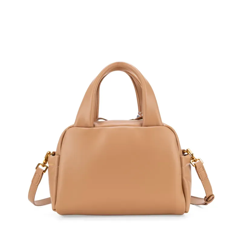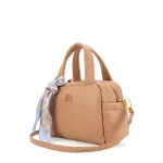Bolso Bowling hecho con material vegano. Cuenta con asa larga ajustable y desprendible. Herraje de monograma. Cierre metálico. Incluye mascada multiusos removible.