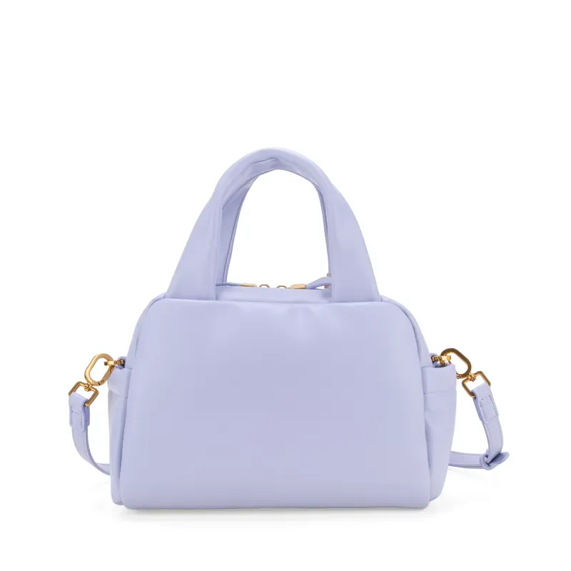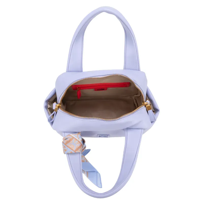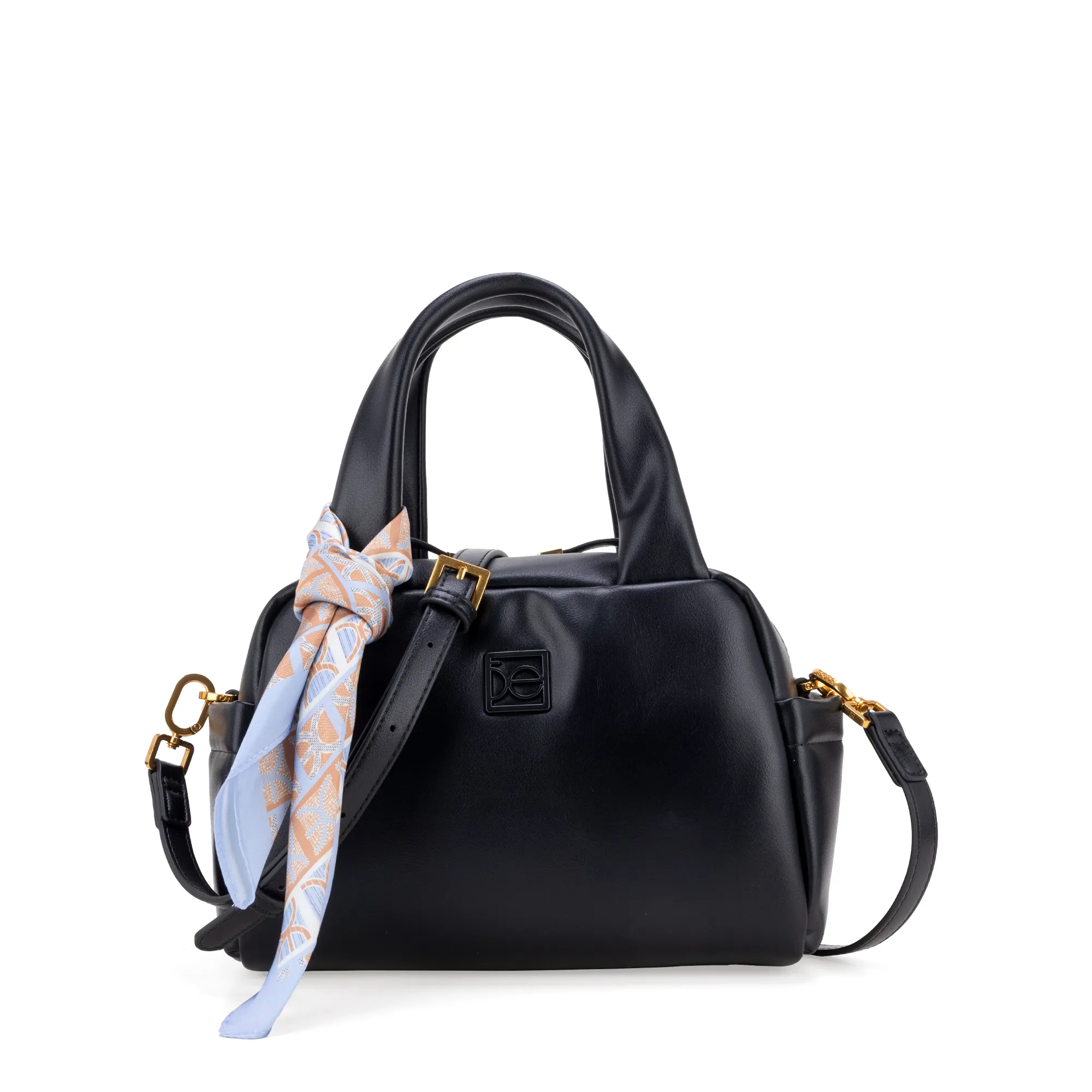 Bolso Bowling hecho con material vegano. Cuenta con asa larga ajustable y desprendible. Herraje de monograma. Cierre metálico. Incluye mascada multiusos removible.