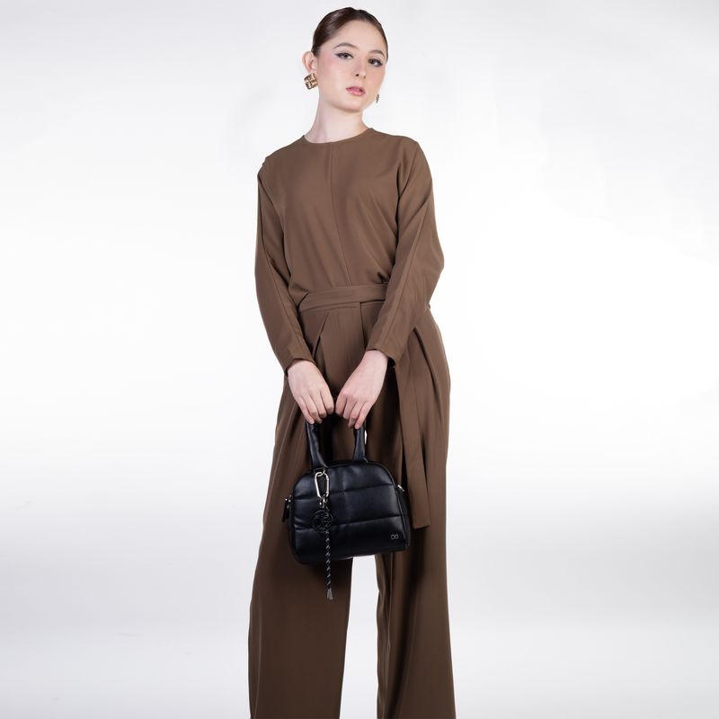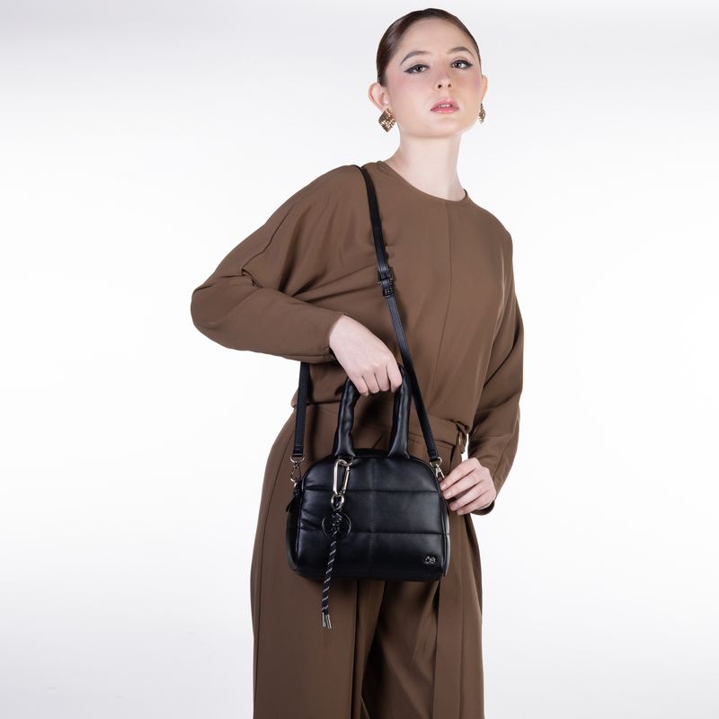 Bolsa Bowling Chico Acolchado Con Charm Color Negro