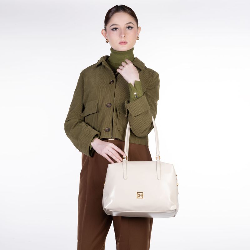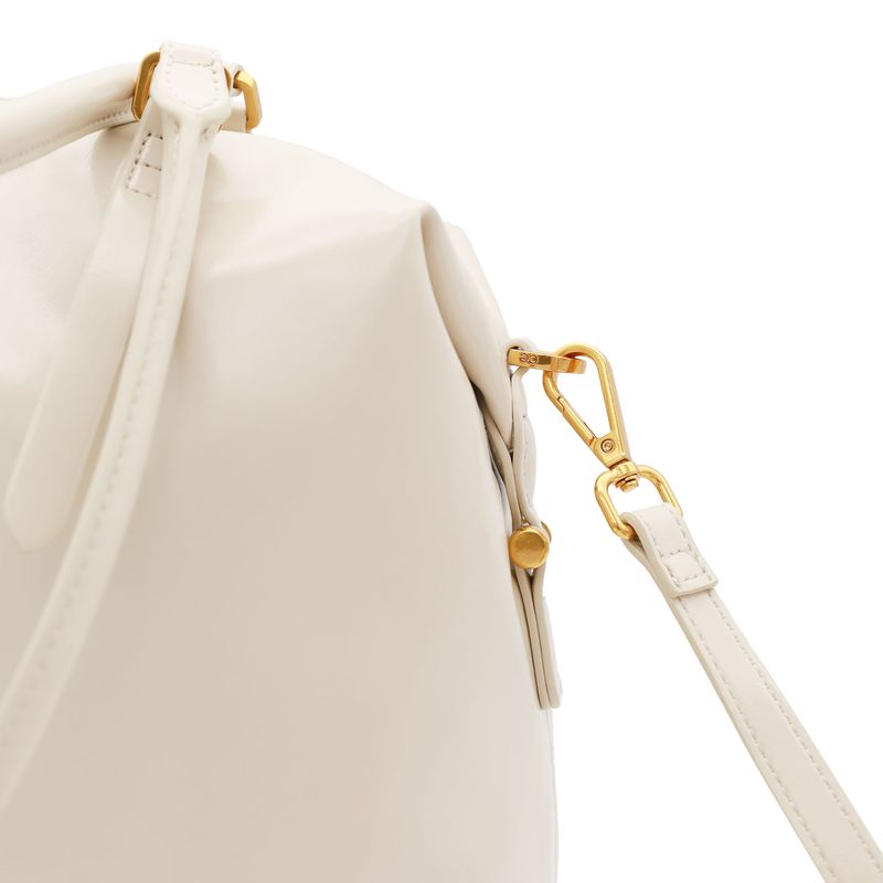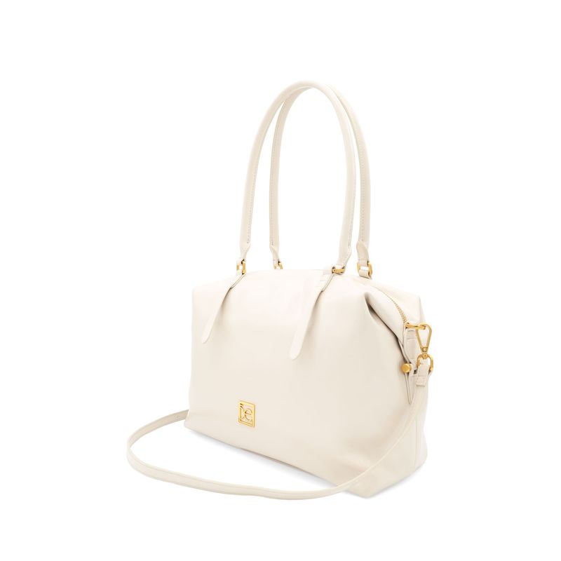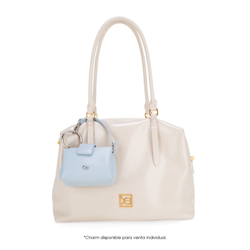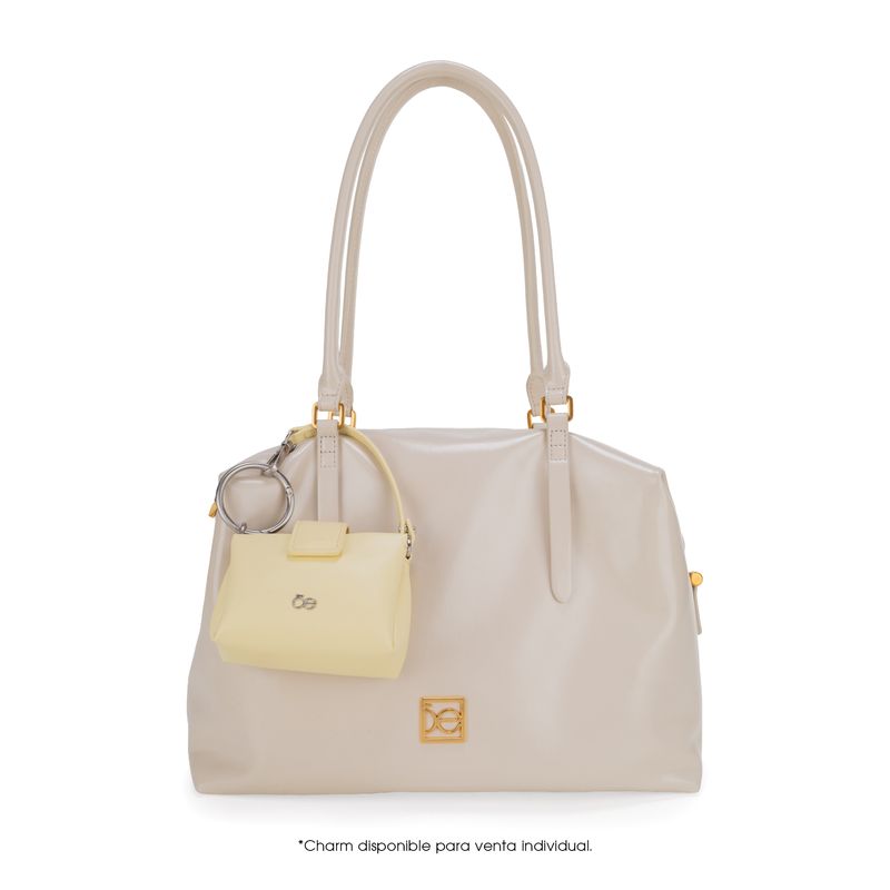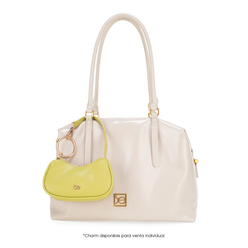 Bolso Bowling hecho con material vegano apariencia piel. Cuenta con cierre metálico de larga duración. Tiene herraje metálico de monograma Asas de hombro reforzadas. Asa larga ajustable y removible.