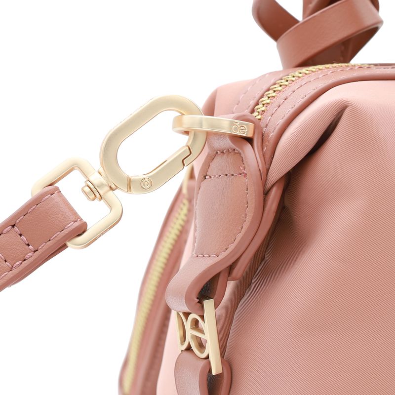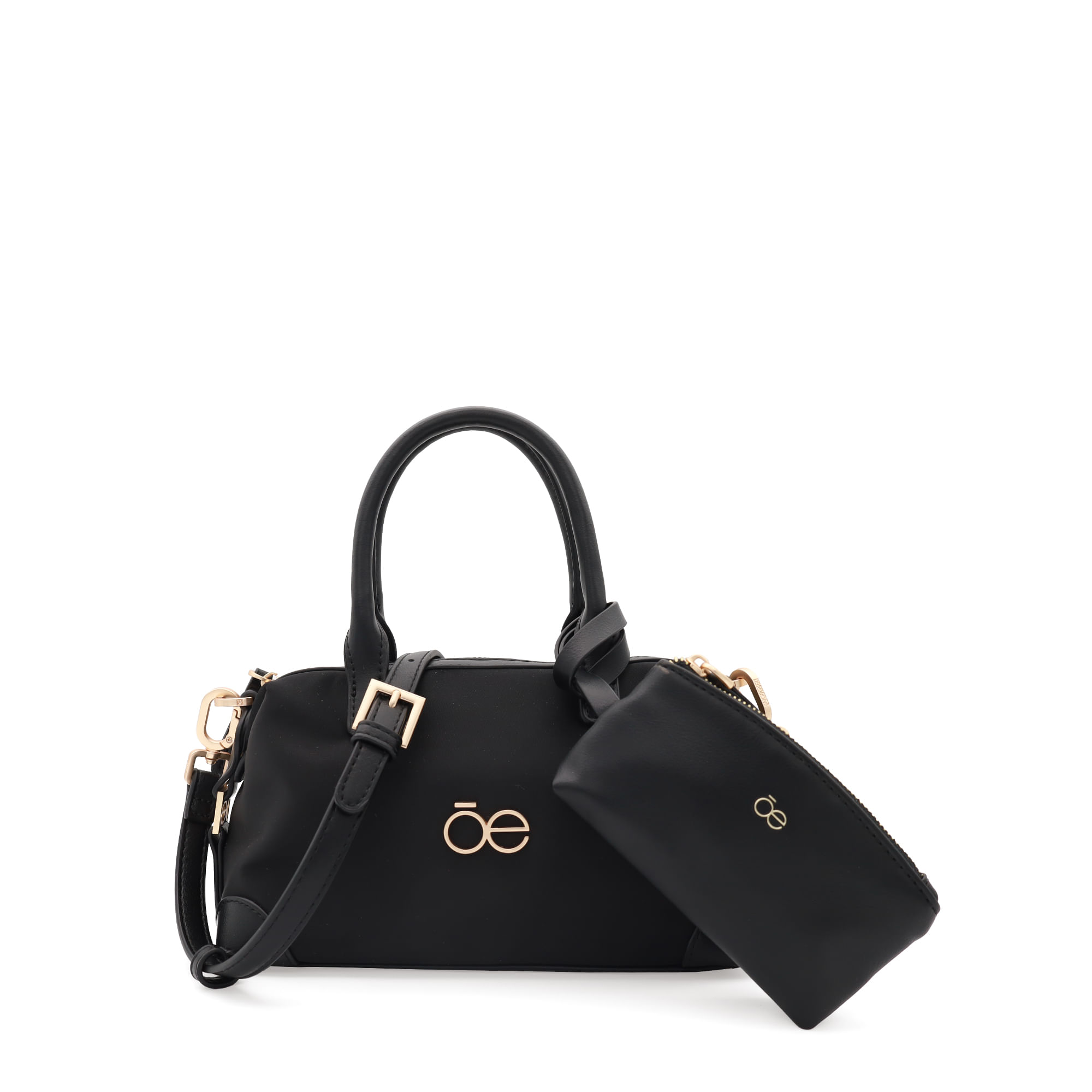 Bolso Bowling hecho con material textil. Cuenta con cierre metálico de larga duración. Herraje metálico de monograma. Incluye monedero desprendible. Asa larga ajustable y removible.
