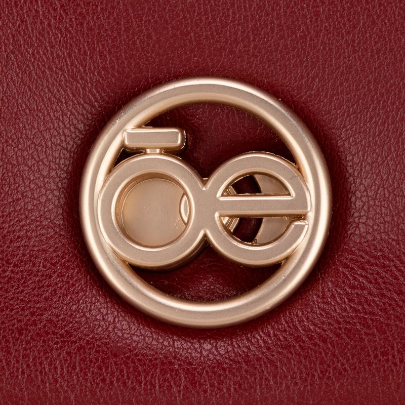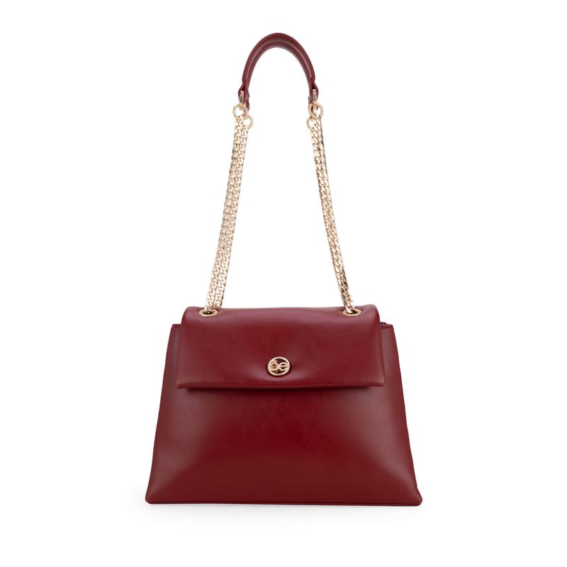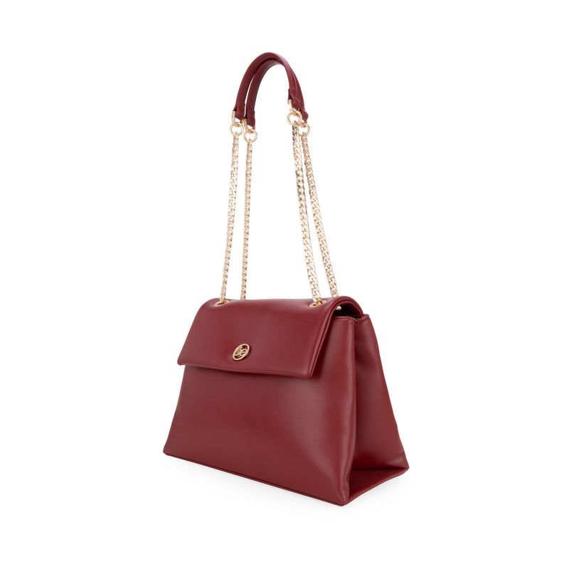 Bolso Briefcase hecho con material vegano apariencia piel. Cuenta con cubierta con broche metálico giratorio. Asa larga de cadena ajustable a dos alturas.