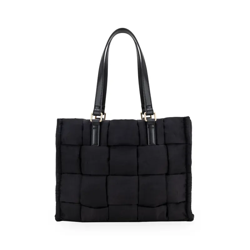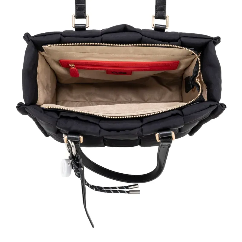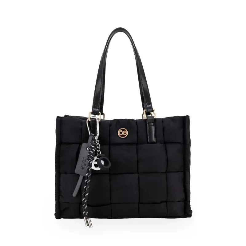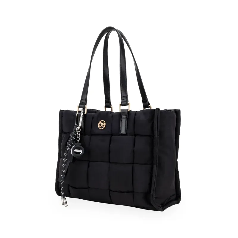 Bolso Tote hecho con material textil. Cuenta con asa corta. Herraje de monograma. Incluye charm decorativo desprendible. Cierre metálico de larga duración.