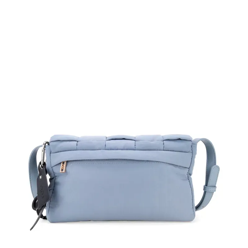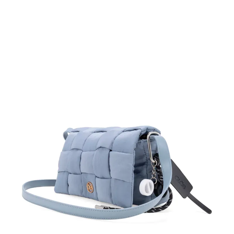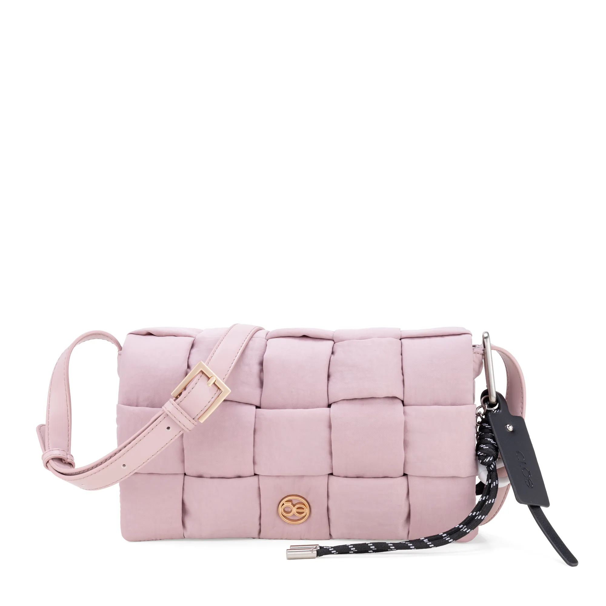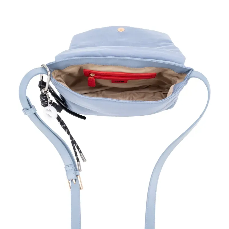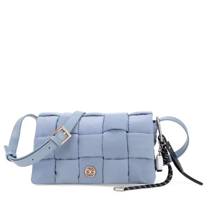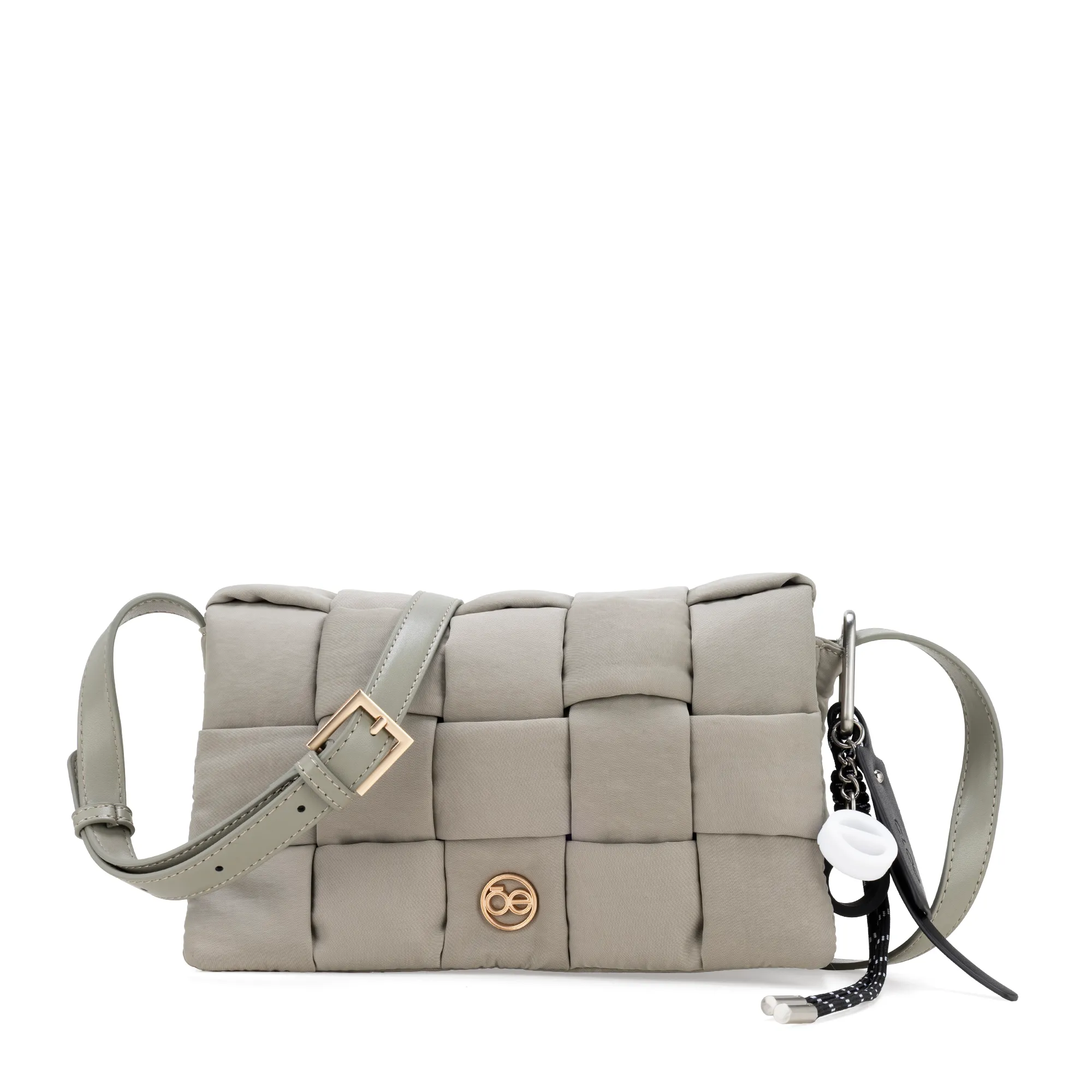 Bolso Crossbody hehco con material textil. Cuenta con asa larga ajustable. Herraje de monograma. Incluye charm decorativo desprendible.