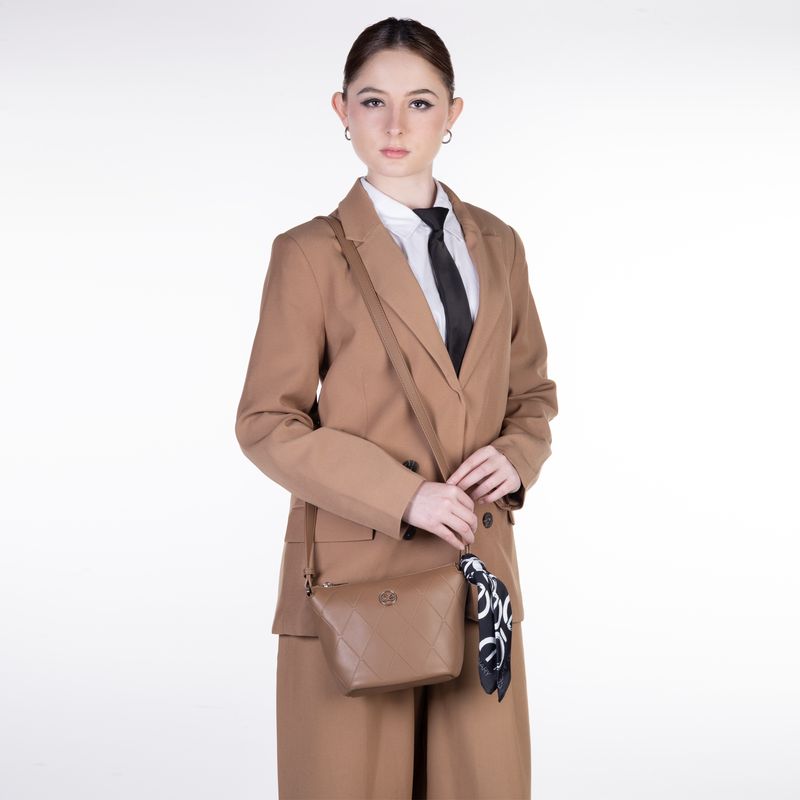 Bolsa Crossbody Chica Con Mascada Color Camel