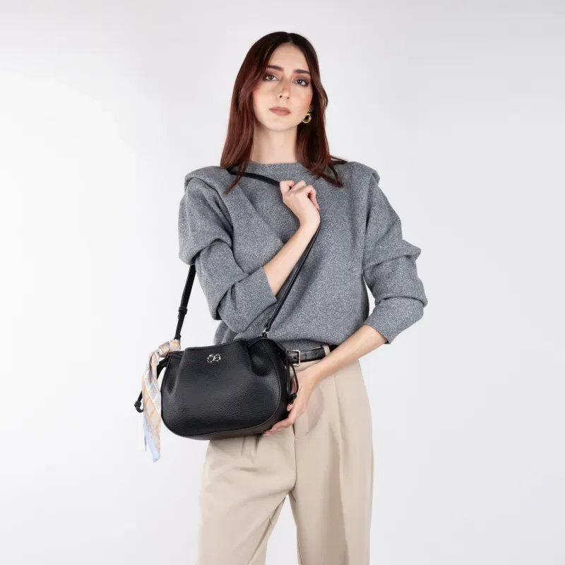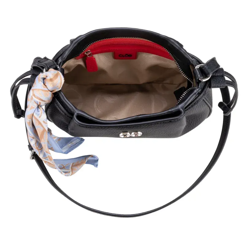 Bolsa Crossbody Chica Con Mascada Color Negro