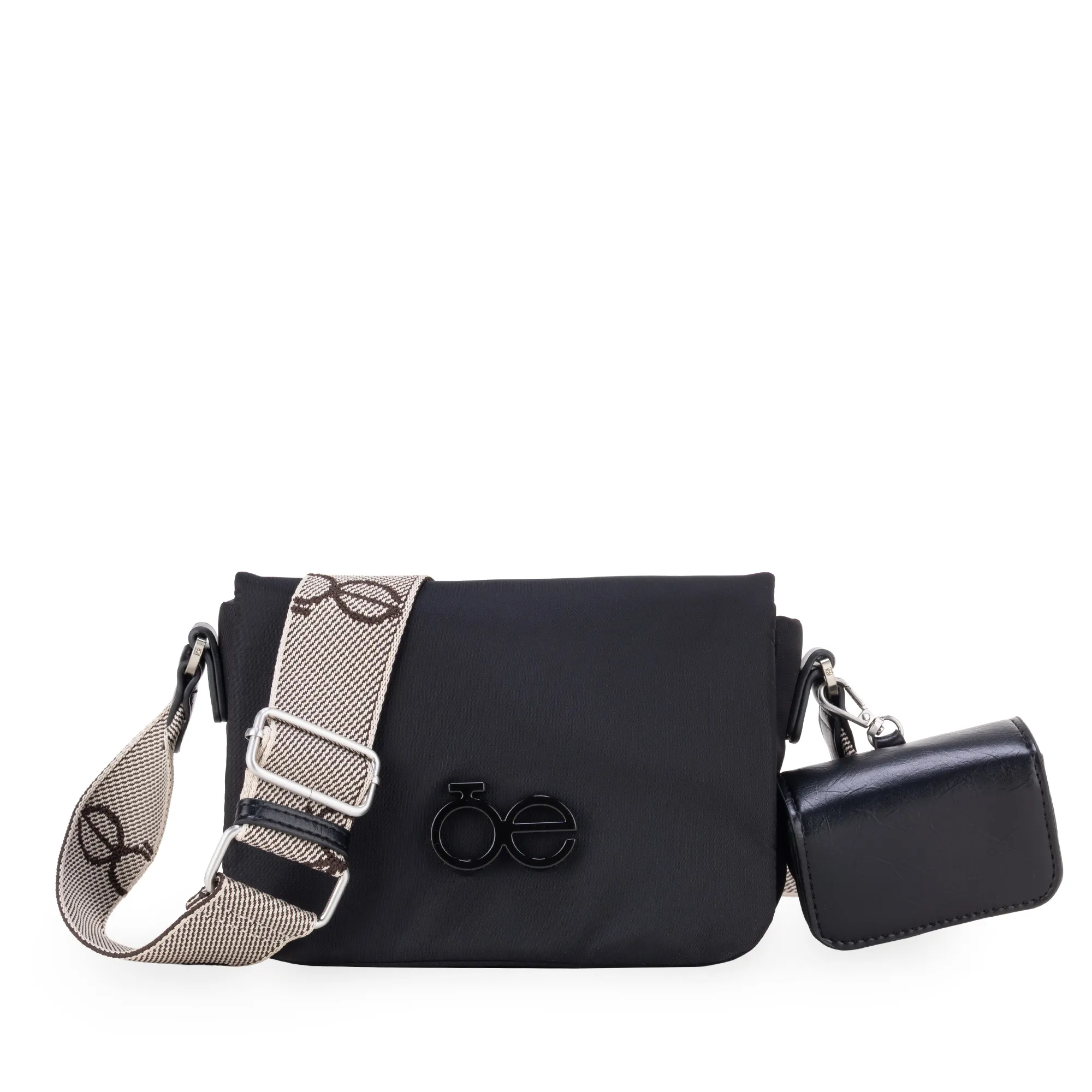 Bolso Crossbody hecho con material vegano. Incluye monedero desprendible. Herraje metálico de monograma. Cuenta con asa larga ajustable.