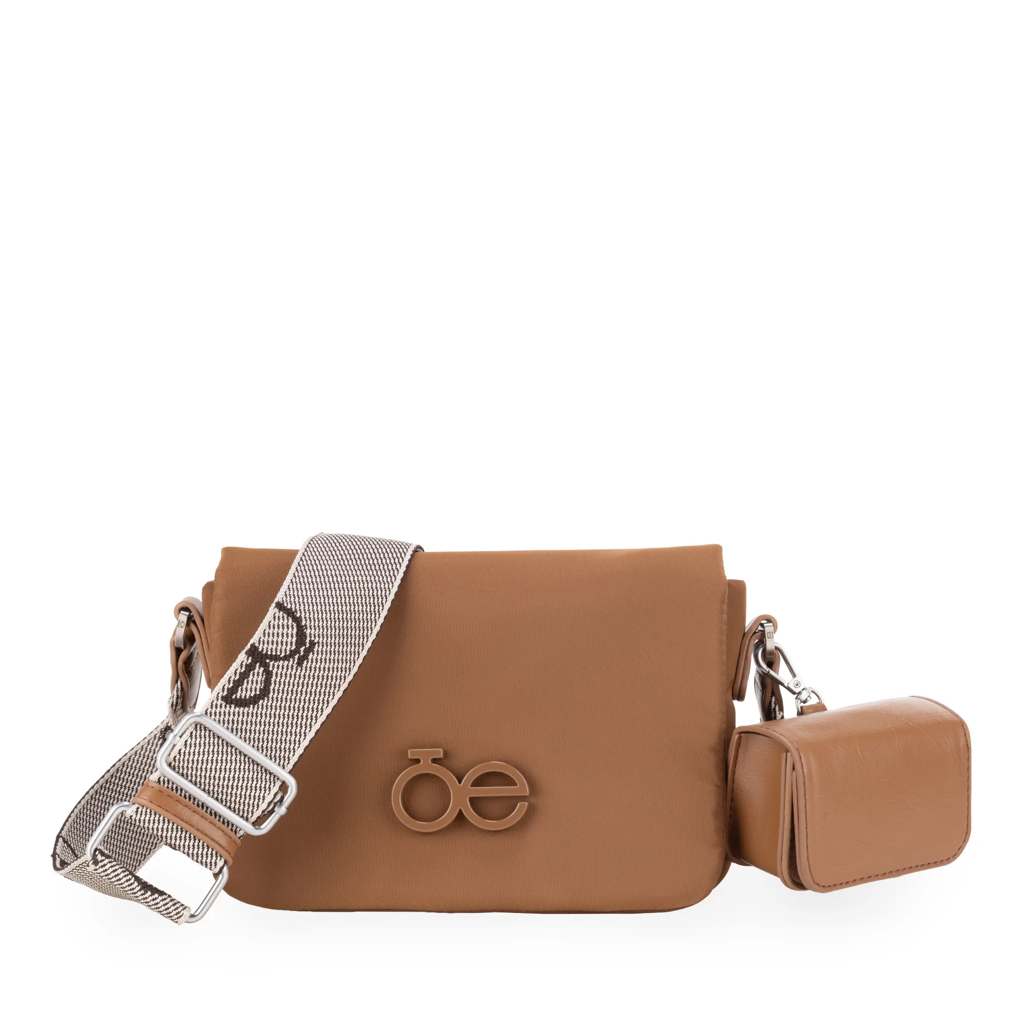 Bolso Crossbody hecho con material vegano. Incluye monedero desprendible. Herraje metálico de monograma. Cuenta con asa larga ajustable.
