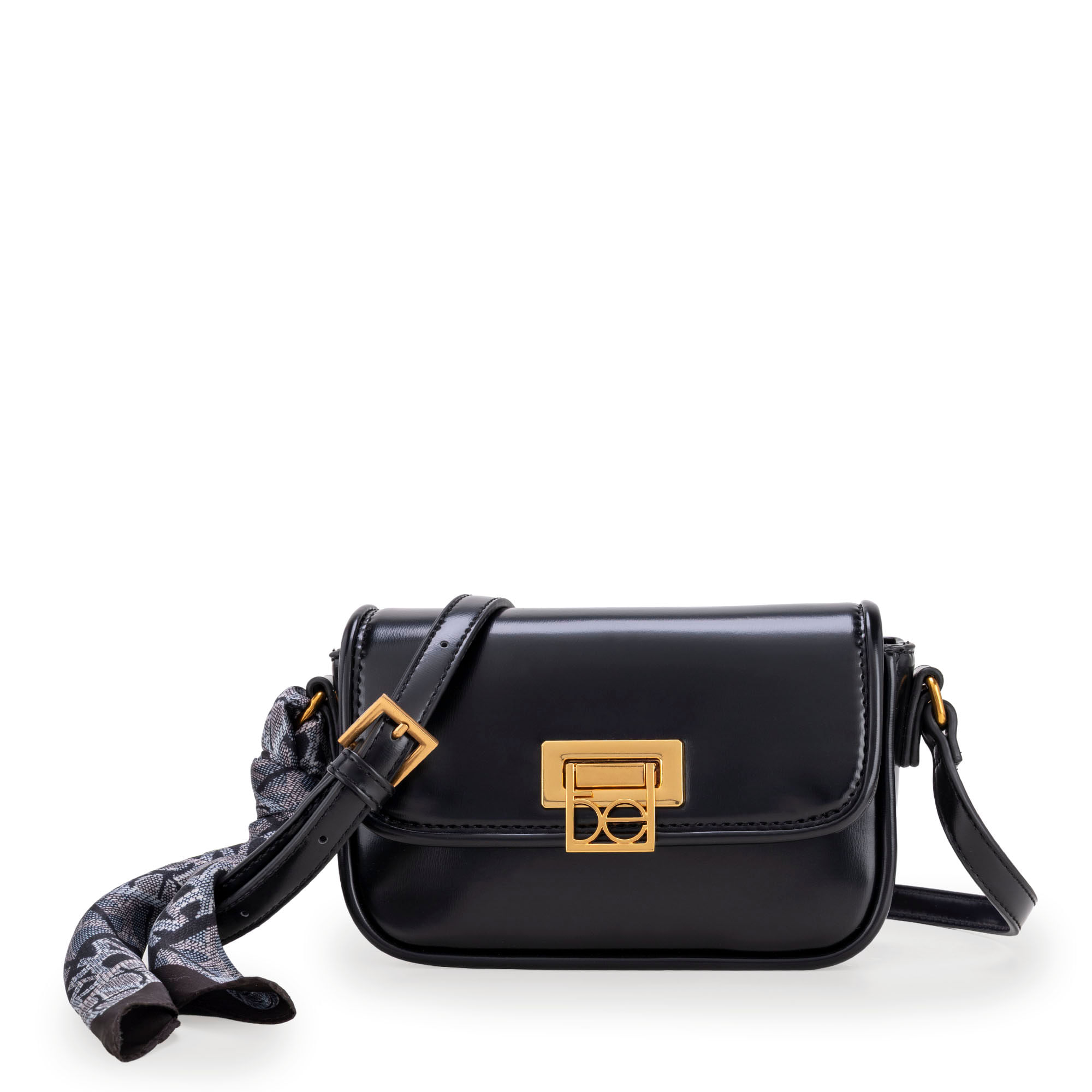 Bolso Crossbody hecha con material vegano apariencia piel. Cuenta con solapa con broche metálico con detalle de monograma. Incluye mascada multiusos desprendible. Asa larga ajustable.