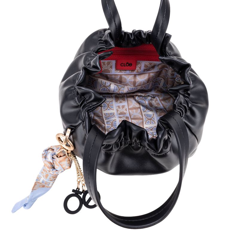 Bolsa Drawstring Chica Con Mascada Color Negro