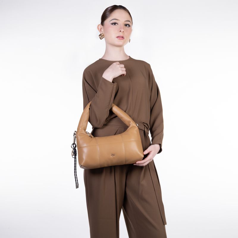 BolsosBolsa Hobo Chica Acolchada Con Charm Color Camel