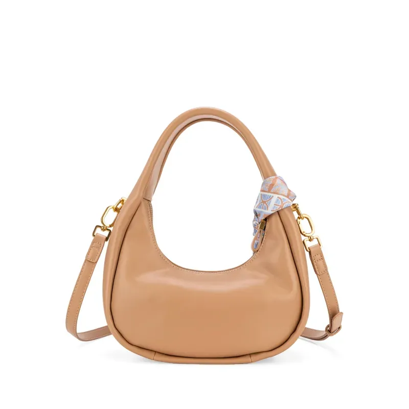 Bolso Hobo hecho con material vegano. Cuenta con cierre metálico. Herraje de monograma. Incluye mascada multiusos removible.