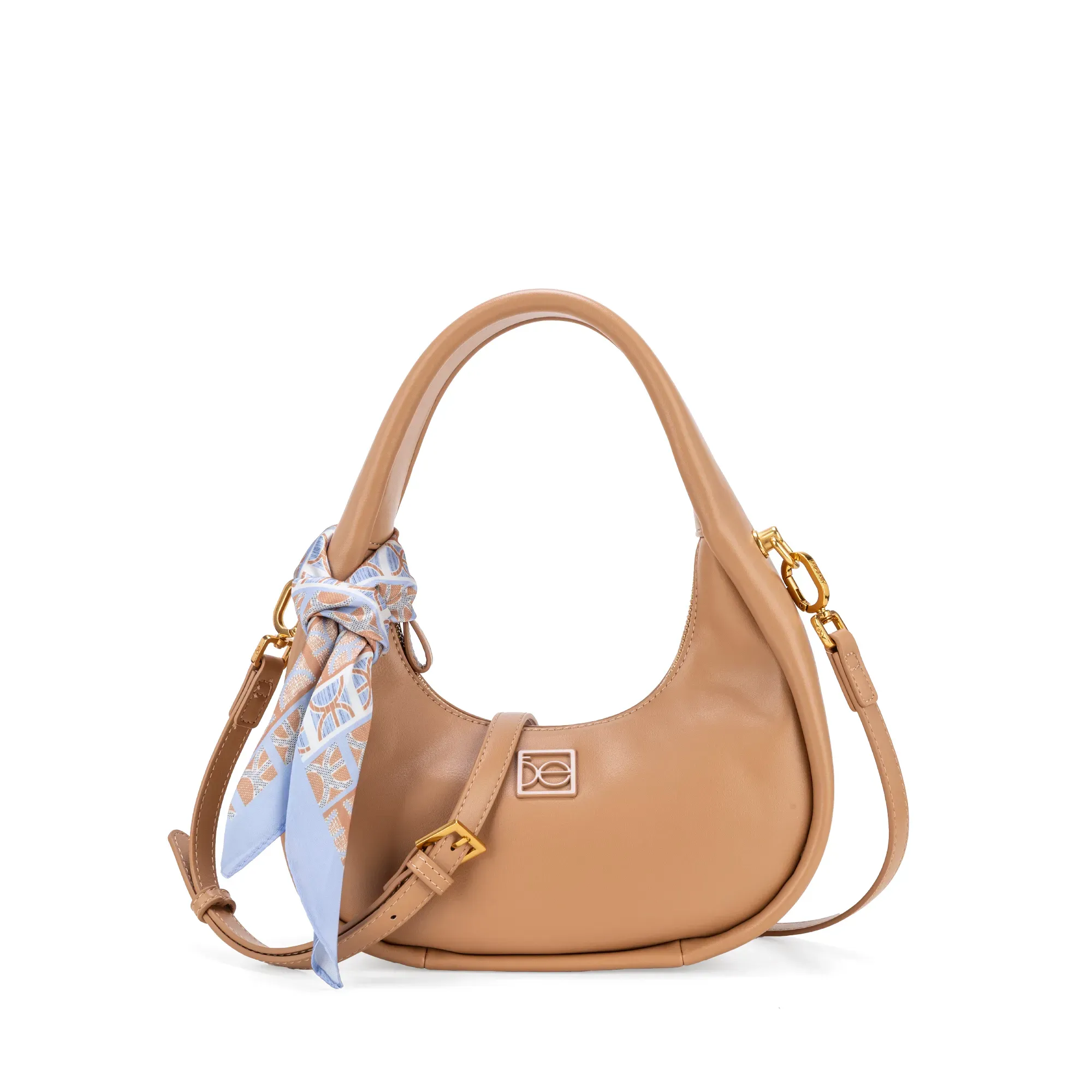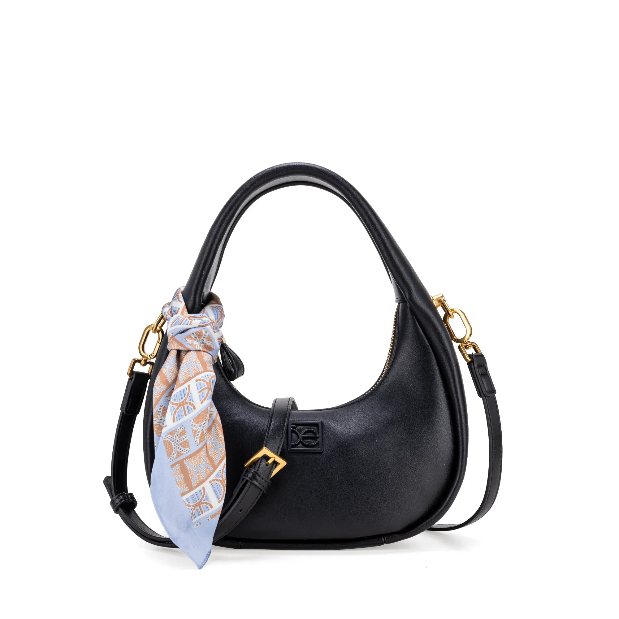 Bolso Hobo hecho con material vegano. Cuenta con cierre metálico. Herraje de monograma. Incluye mascada multiusos removible.