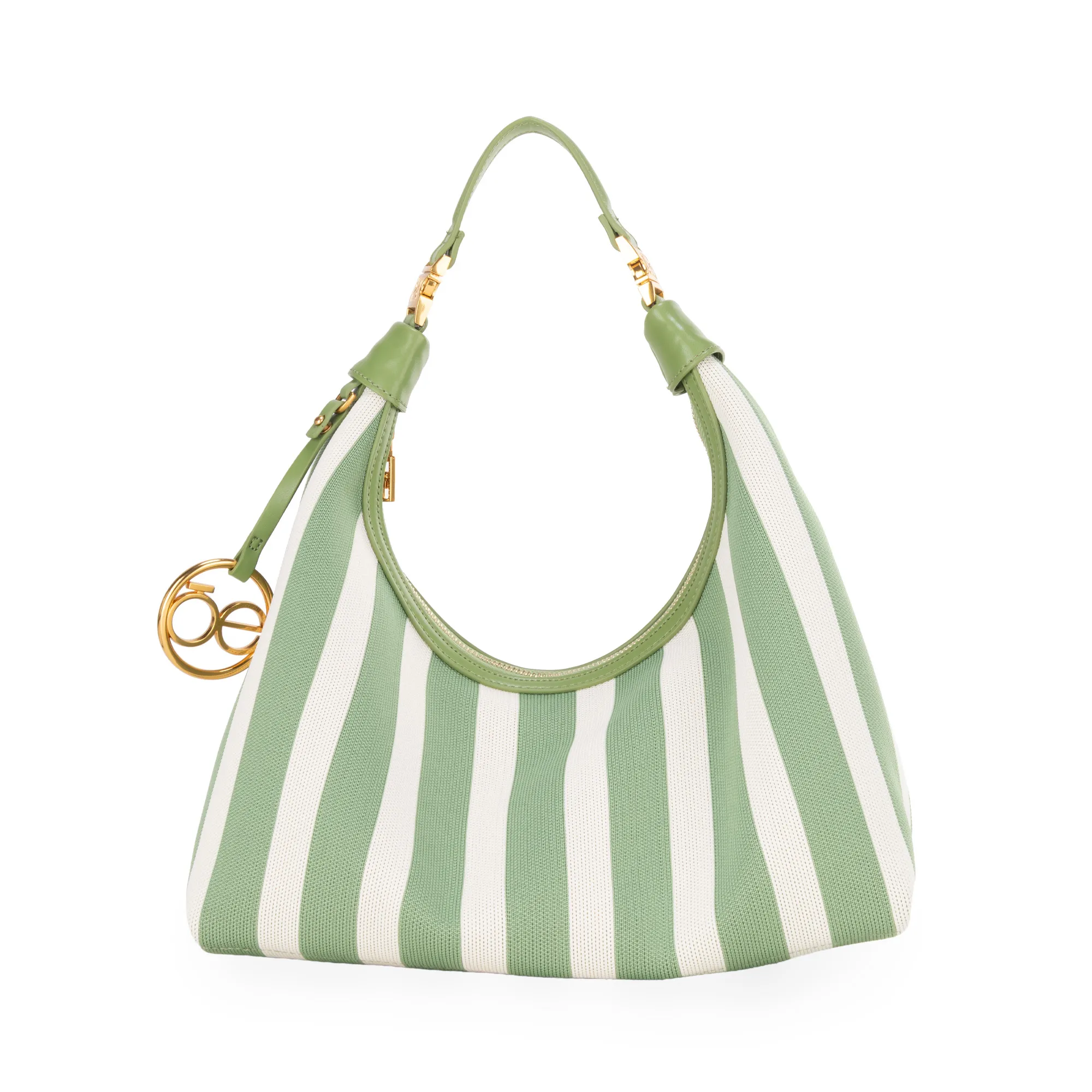 Bolso Hobo hecho con material textil. Cuenta con asa larga ajustable y desprendible con broche metálico. Cierre metálico de larga duración. Incluye charm de monograma metálico desprendible.