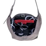 Bolso hecho con material textil. Cuenta con asa al hombro ajsutable con hebilla. Rubber de monograma. Tiene broche magnético.