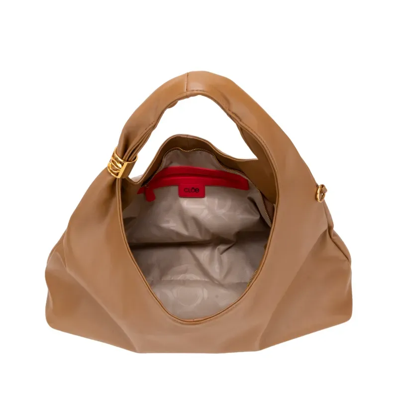 Bolso hecho con material vegano apariencia piel. Cuenta con cierre de larga duración. Herraje de metálico de monograma color oro.