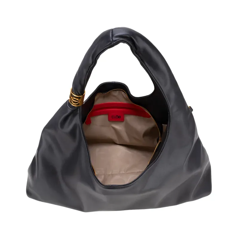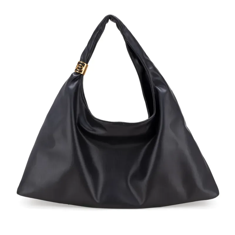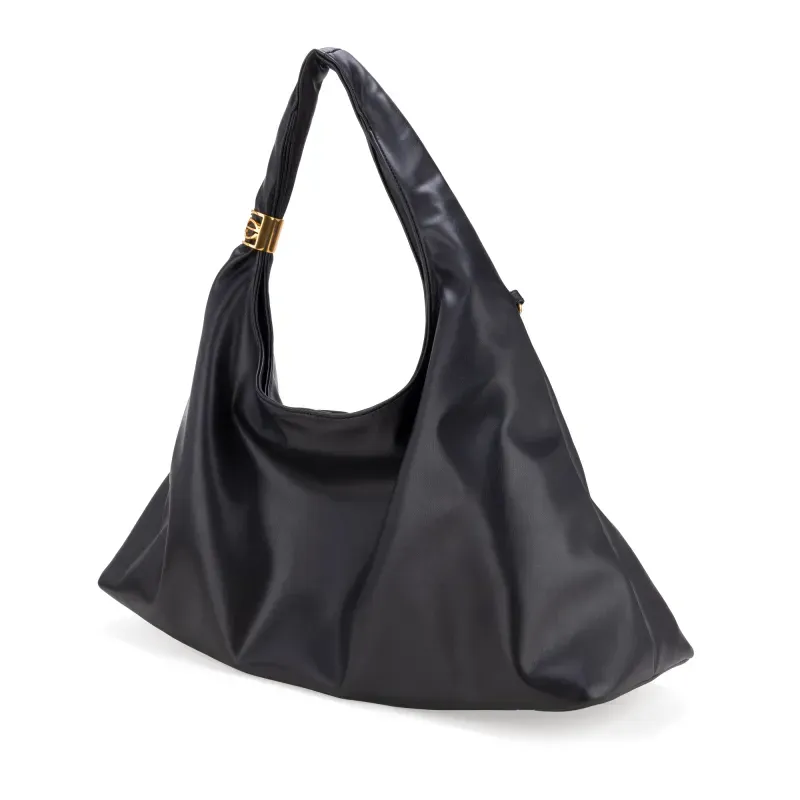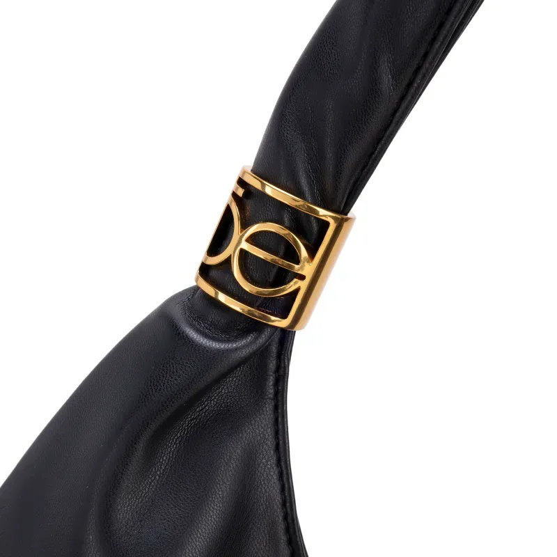 Bolso hecho con material vegano apariencia piel. Cuenta con cierre de larga duración. Herraje de metálico de monograma color oro.