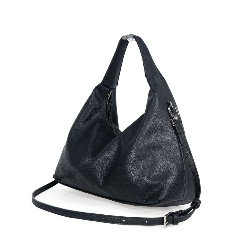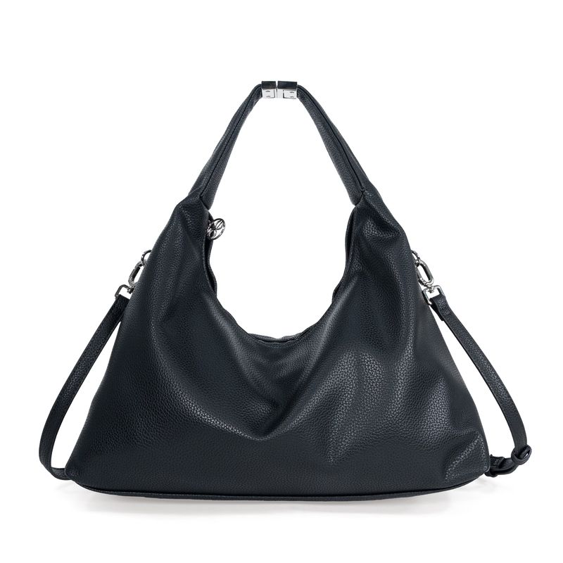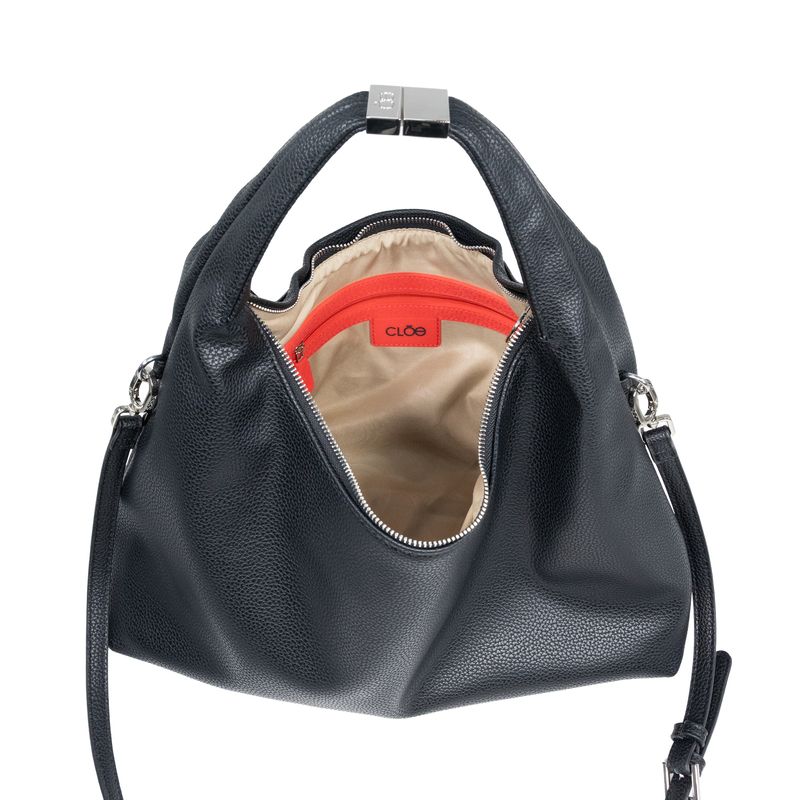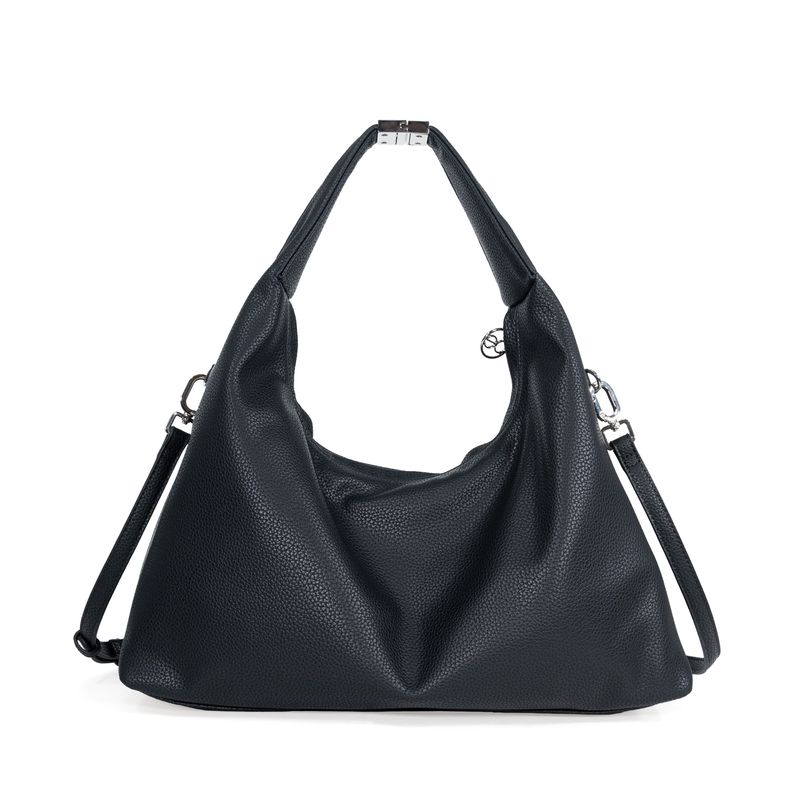 Bolso hecho con material vegano apariencia piel. Cuenta con cierre de larga duración. Asa de mano con broche metálico de mejor apertura. Asa larga ajustable y removible.