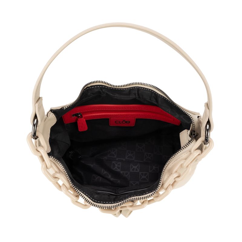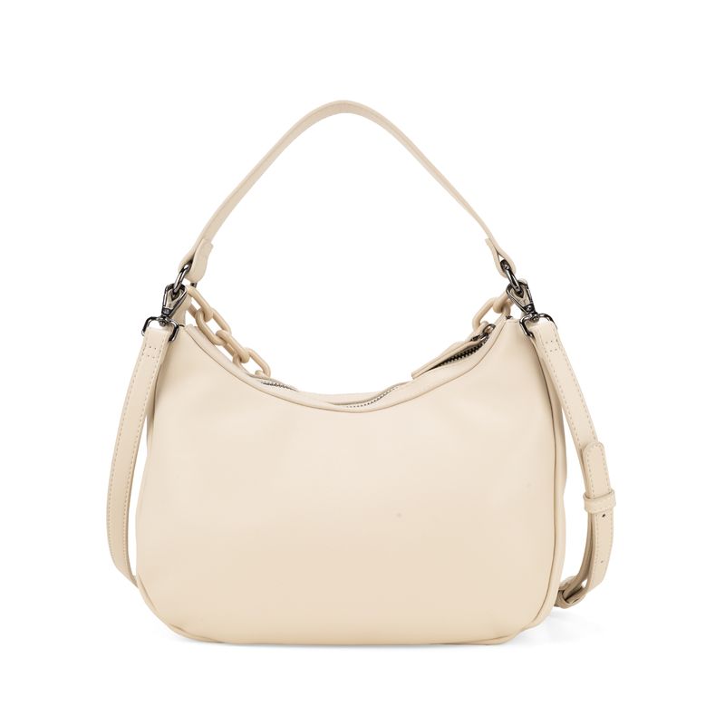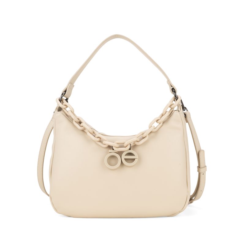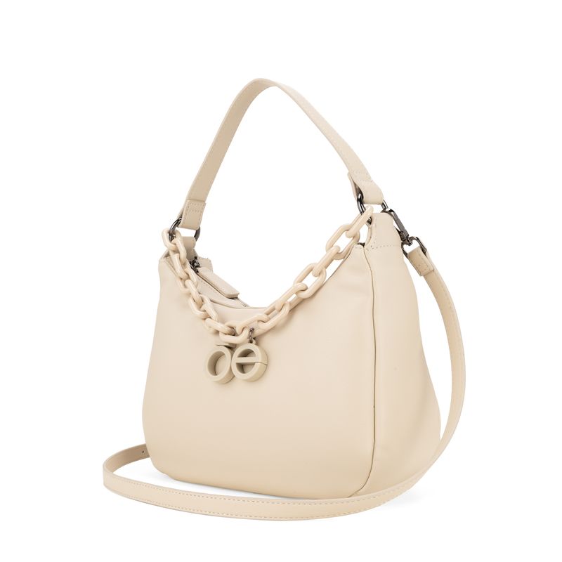 Bolsa Hobo Mediana Con Cadena Acrílica Color Beige