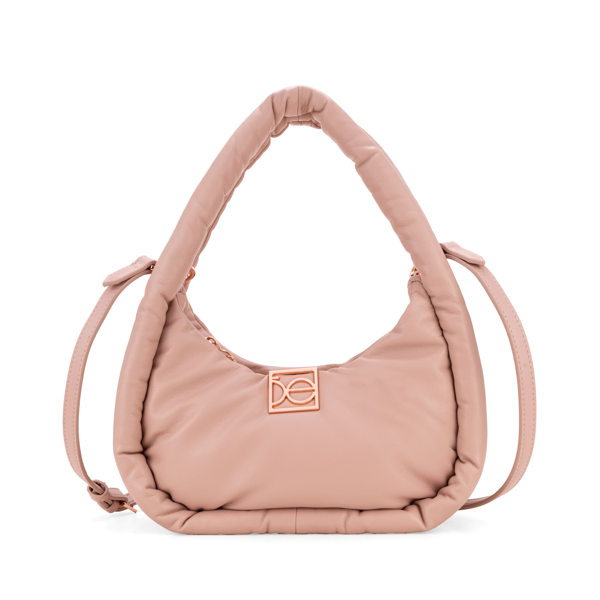 Bolso hecho con material vegano apariencia piel. Cuenta cierre metálico de larga duración. Compartimento posterior de fácil acceso. Herraje metálico de monograma. Look puffy. Asa larga desprendible.