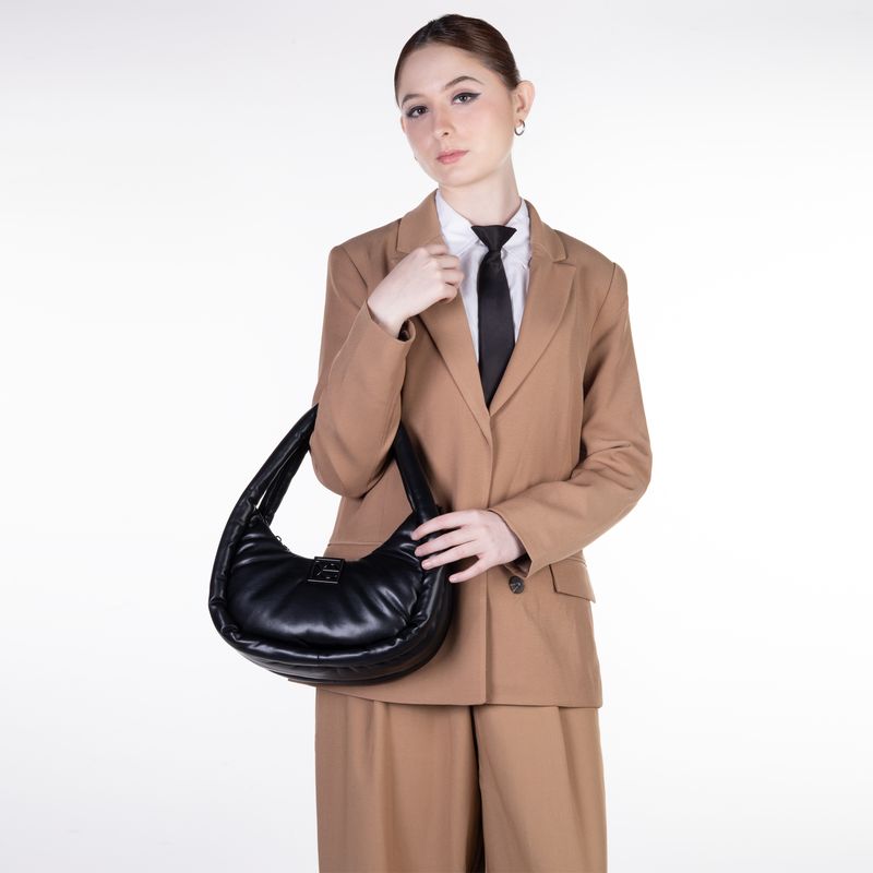 Bolsa Hobo Mediana Look Puffy Color Negro