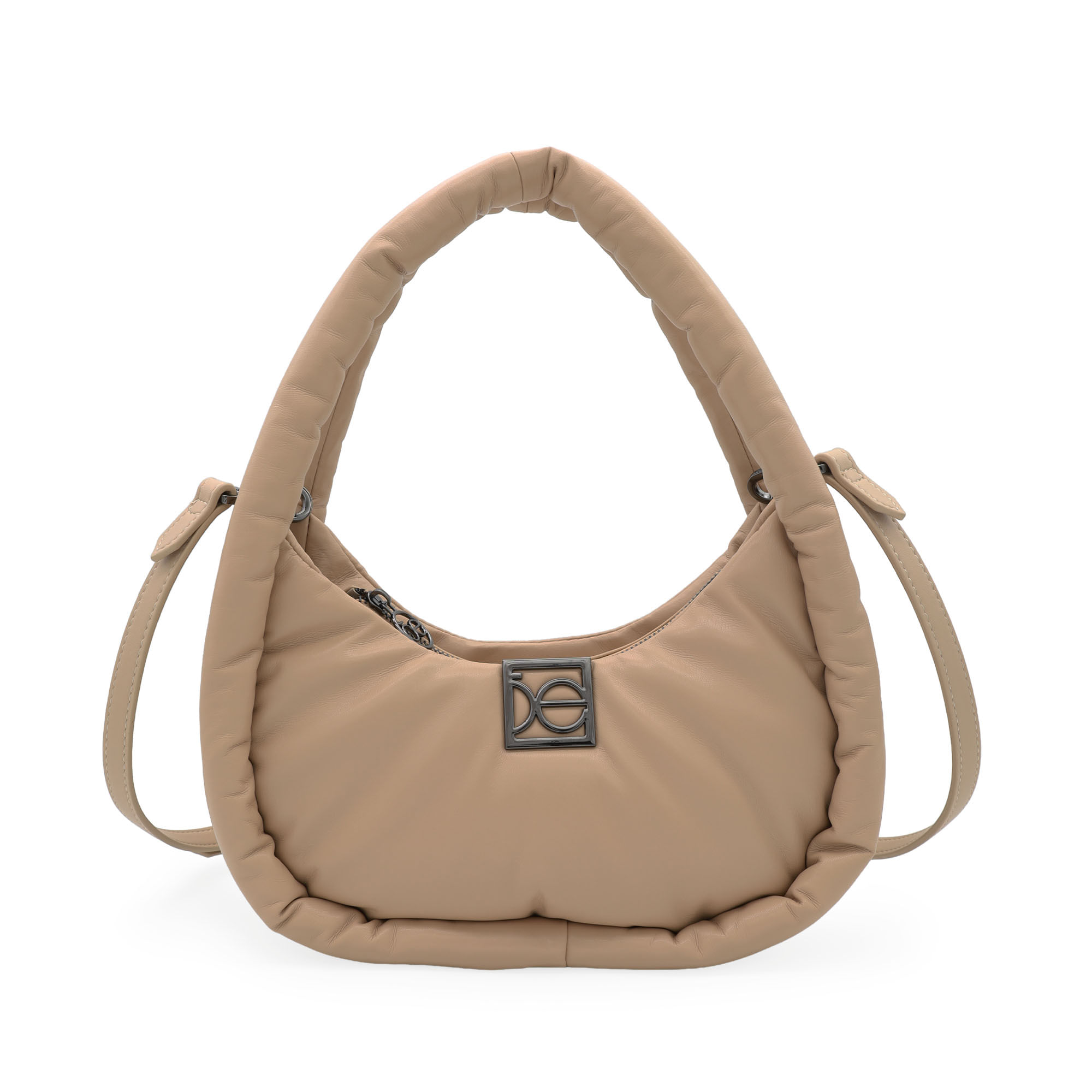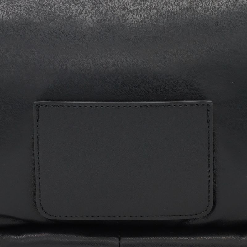 Bolso hecho con material vegano apariencia piel. Cuenta con tapeta con broche magnético. Herraje metálico de monograma. Look puffy. Asa larga desprendible.