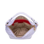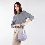 Bolso Hobo hecho con material vegano. Cuenta con cierre metálico. Herraje de monograma. Incluye asas intercambiables.