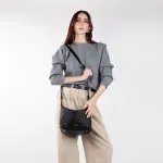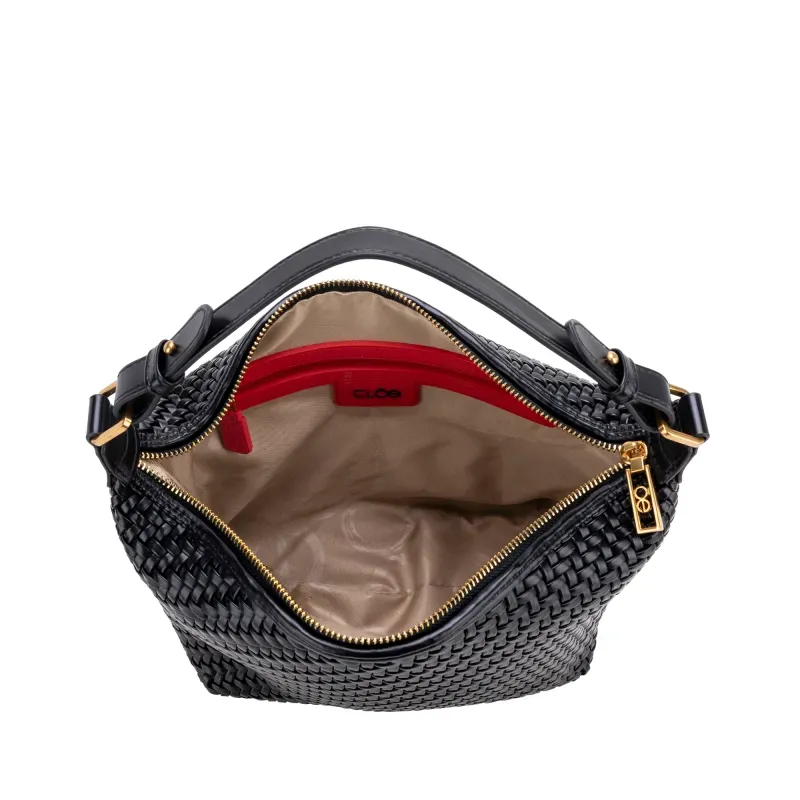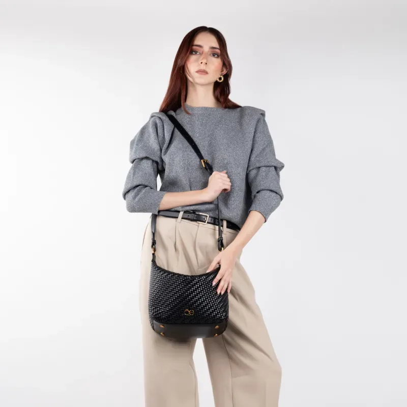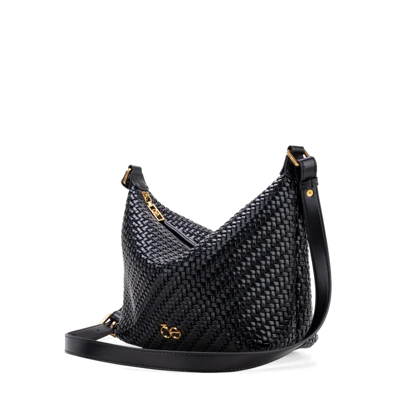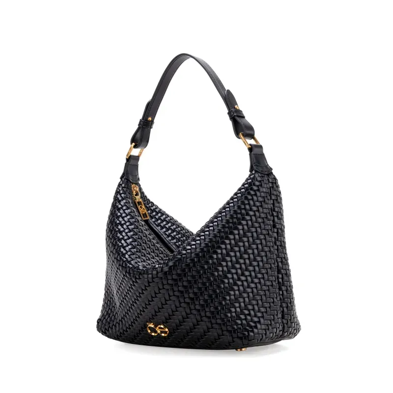 Bolsa Hobo Mediana Look Tejido Color Negro