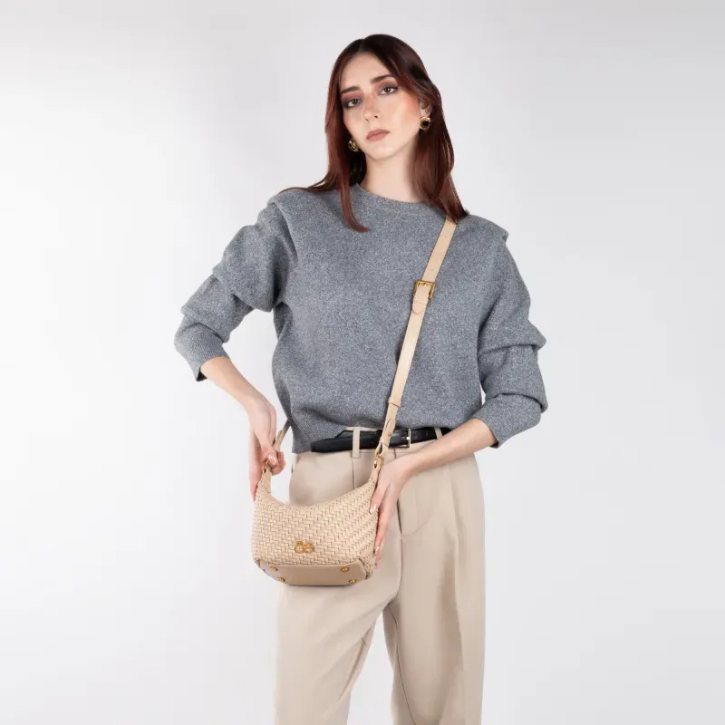 Bolso Crossbody hecho con material vegano. Cuenta con cierre metálico. Herraje de monograma. Incluye asas intercambiables.