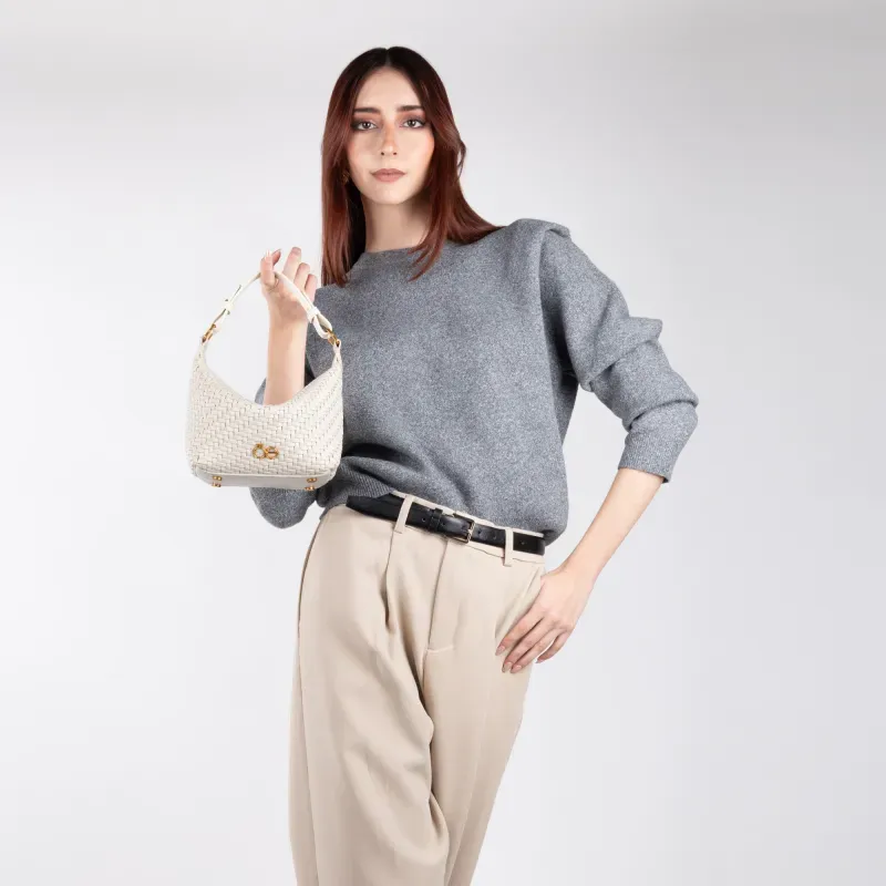 BolsoShoulder BagBolsa Hobo Mini Look Tejido Color Blanco