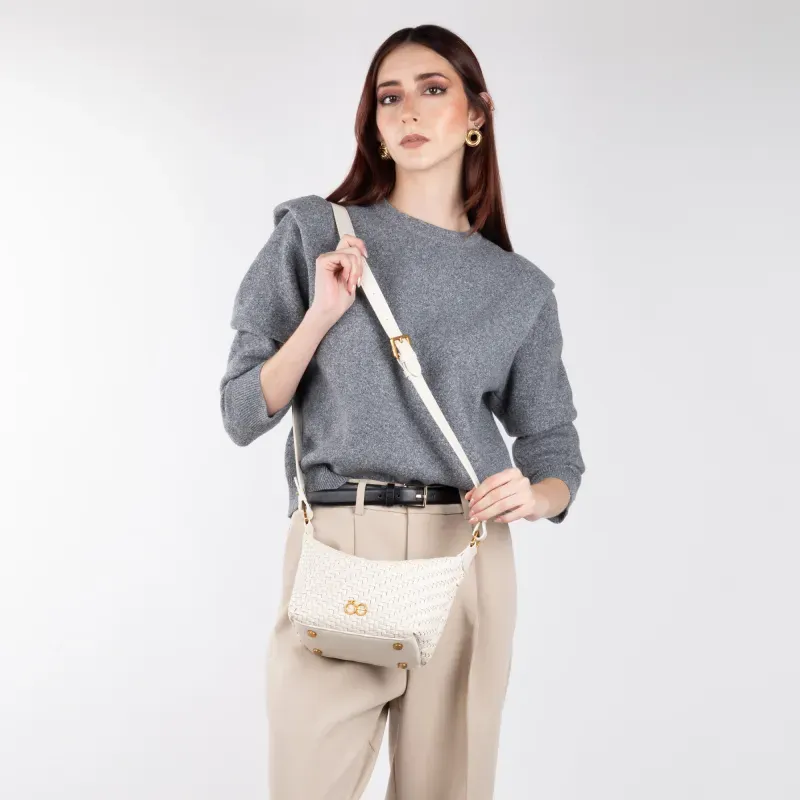 Bolsa Hobo Mini Look Tejido Color Blanco
