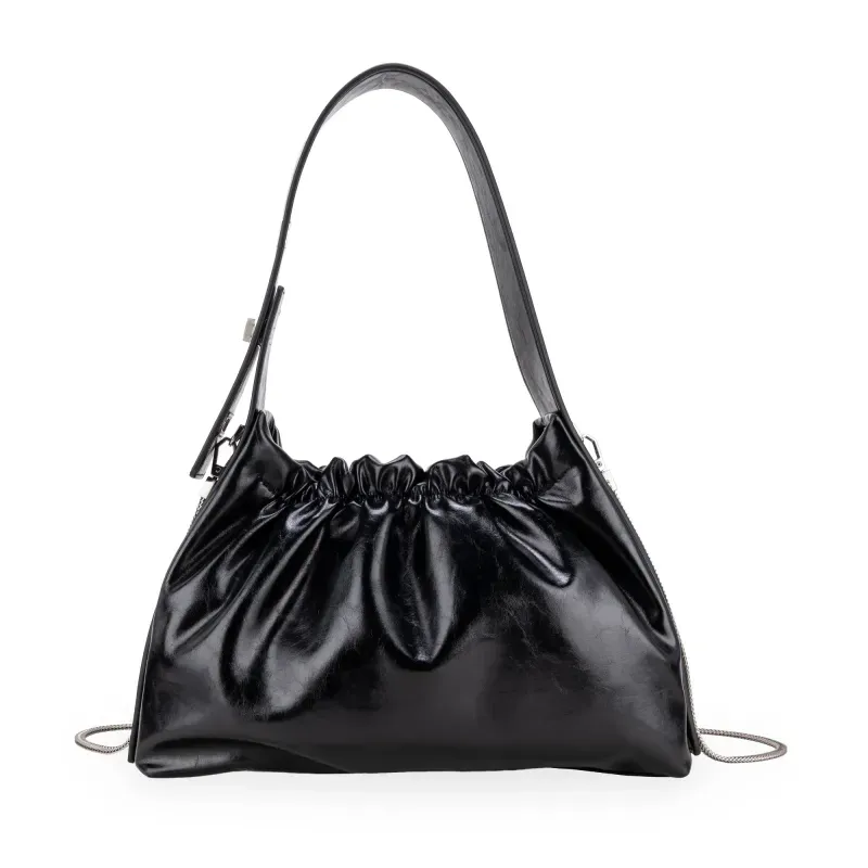 Bolsa Lady Bag Mediana Con Asa De Cadena Color Negro