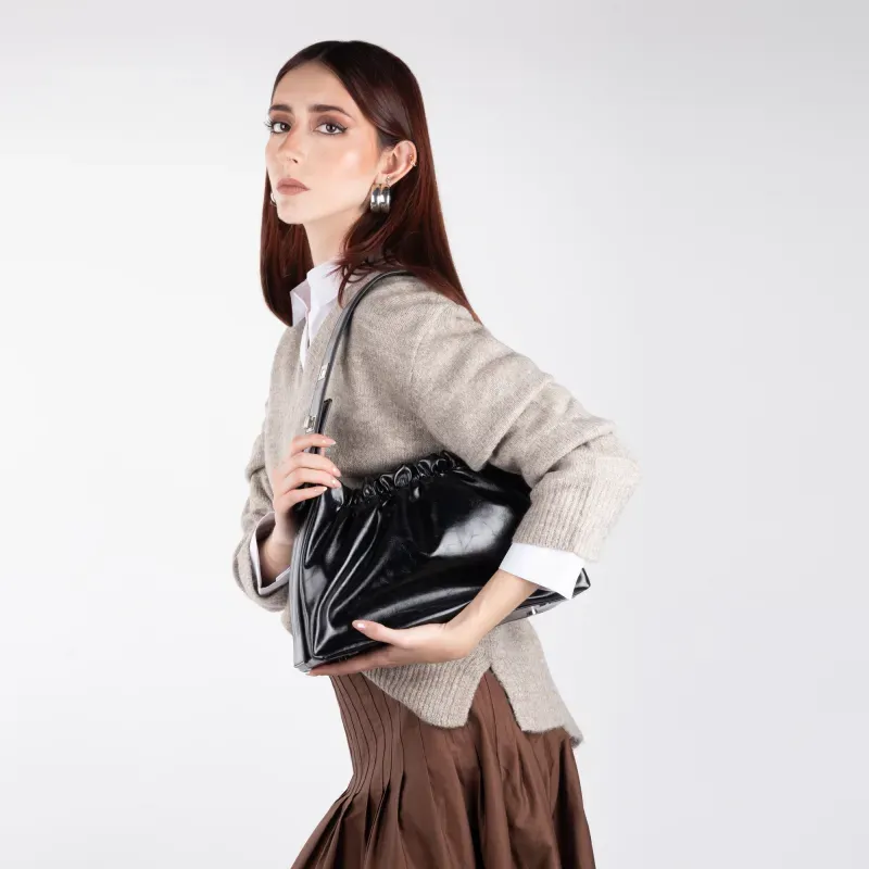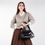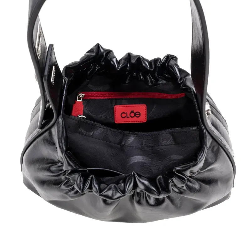 Bolso Lady bag hecho con material vegano. Incluye asa larga de cadena desprendible. Asa corta ajustable. Cuenta con herraje metálico de monograma.