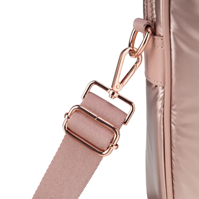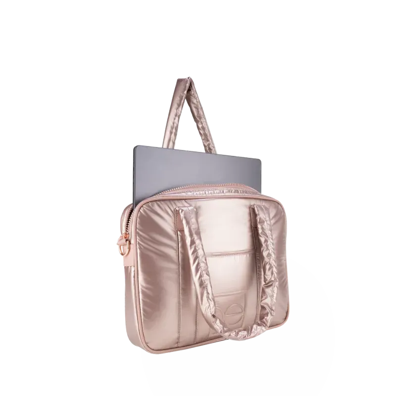 Porta Laptop hecha con material textil. Apilable en bastón de equipaje. Cuenta con asa ajustable desprendible. Asa corta.