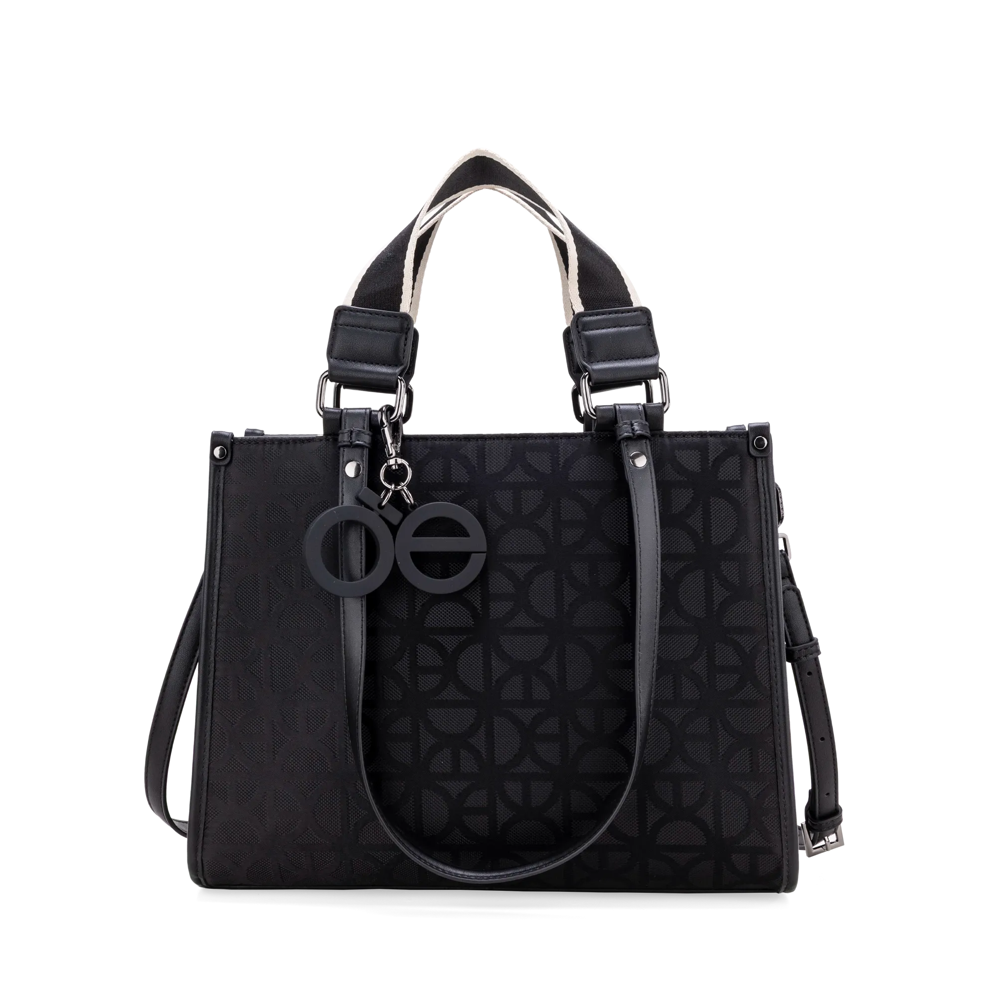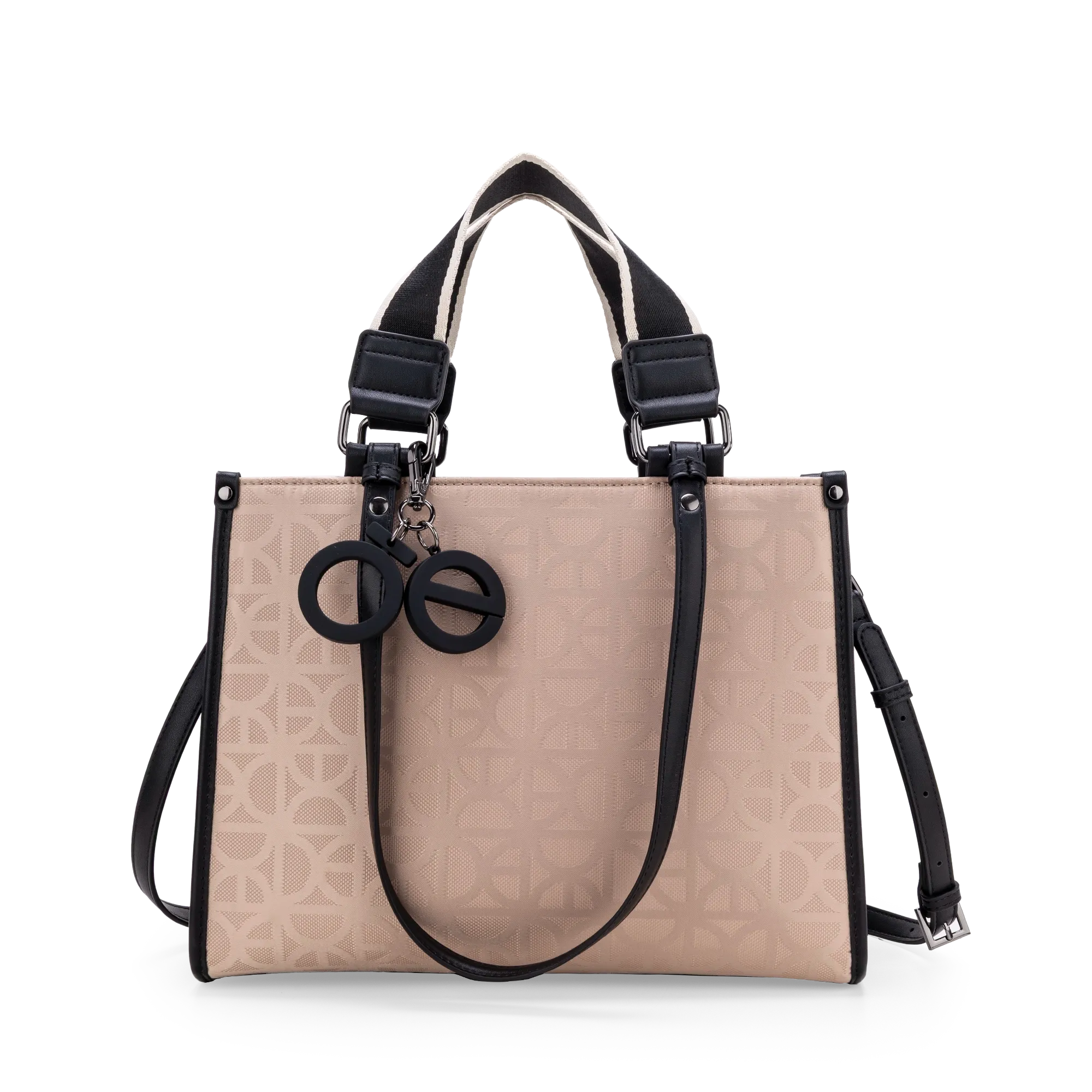 Bolso Satchel hecho con material textil. Cuenta con cierre de larga duración. Tiene charm de monograma desprendible. Compartimento posterior de fácil acceso. Cuenta con tres tipos de asas para distintos usos.