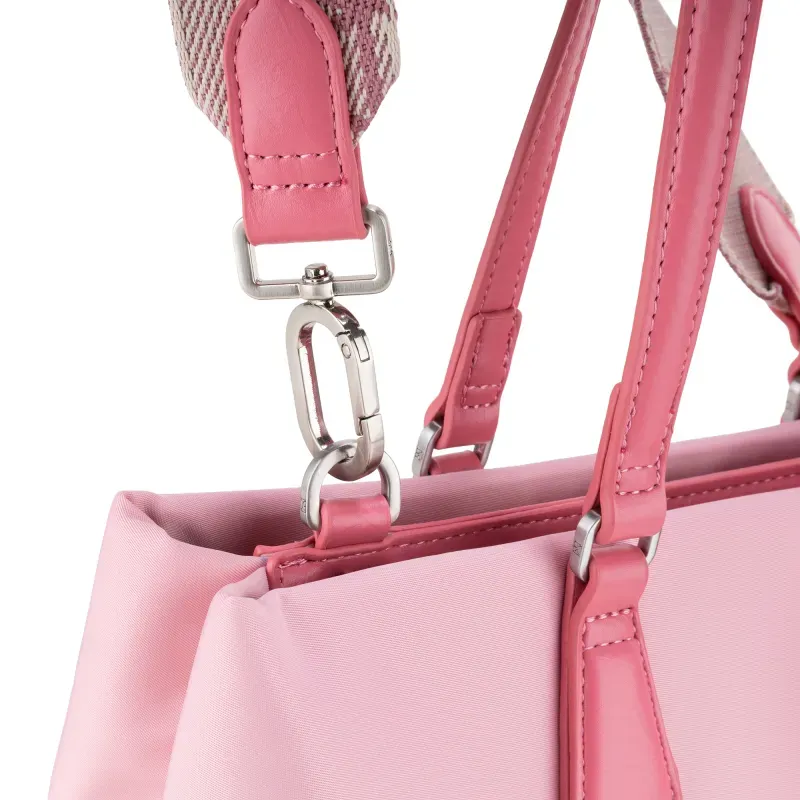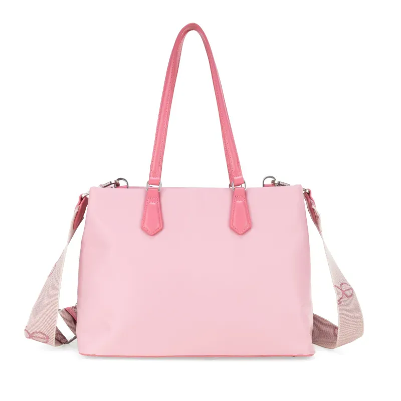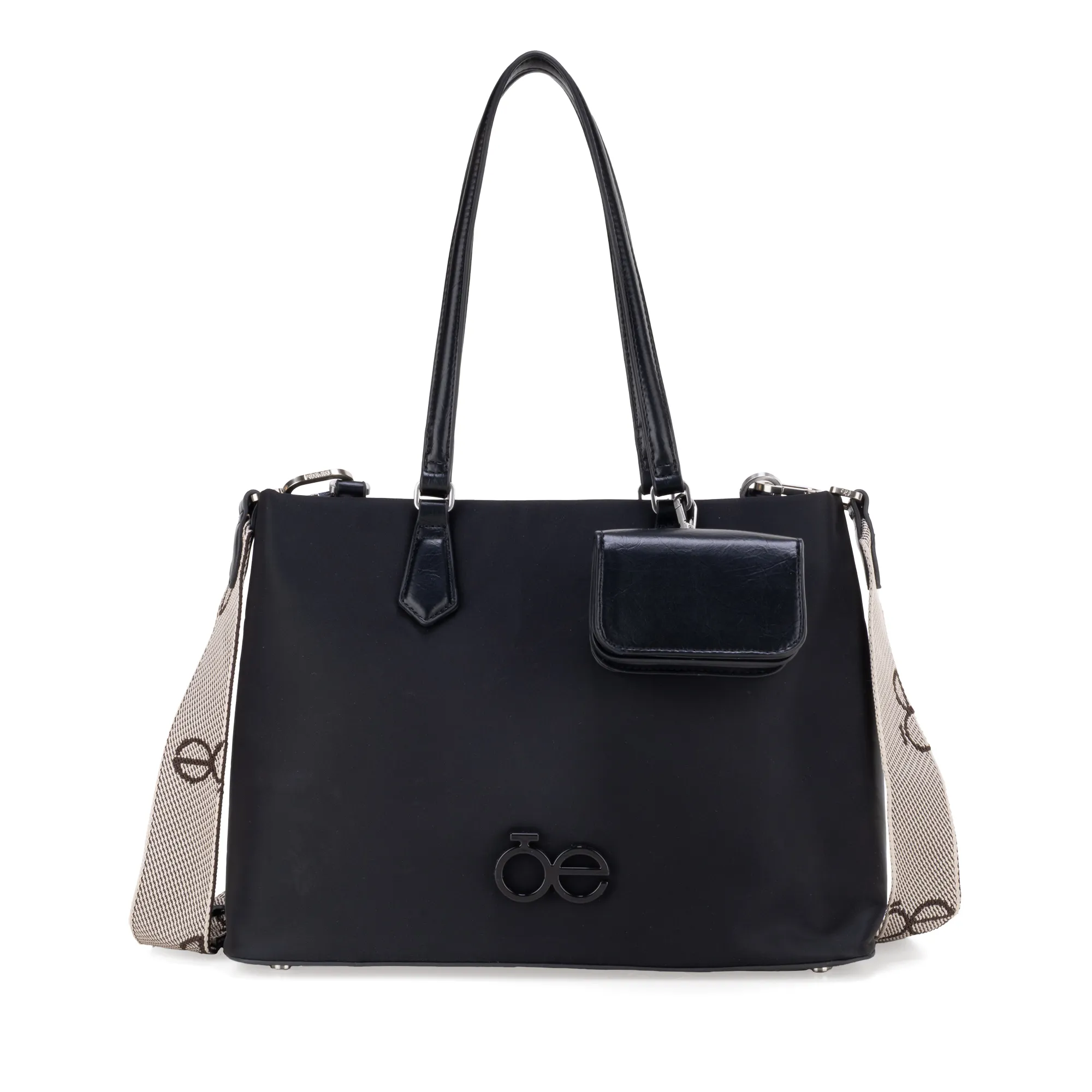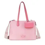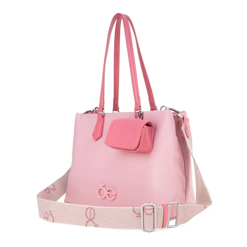Bolso Satchel hecho con material textil. Incluye monedero desprendible. Asa larga ajustable. Cierre metálico de larga duración. Cuenta con herraje metálico de monograma.