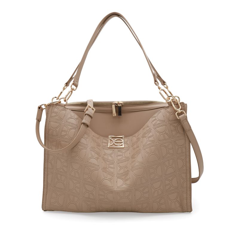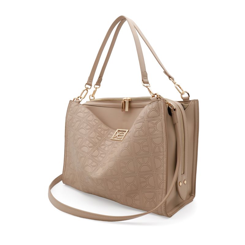 Bolsa Satchel Grande Troquelado Monograma Color Beige