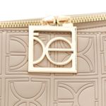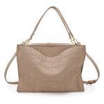Bolso Satchel hecho con material vegano apariencia piel. Cuenta con cierre metálico de larga duración. Troquelado de monograma. Herraje metálico. Asas de hombr desprendible. Asa larga ajustable y removible.