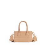 Bolso Satchel hecho con material vegano apariencia piel. Cuenta con monograma troquelado. Tiene cierre metálico de larga duración. Asa larga ajustable y removible.
