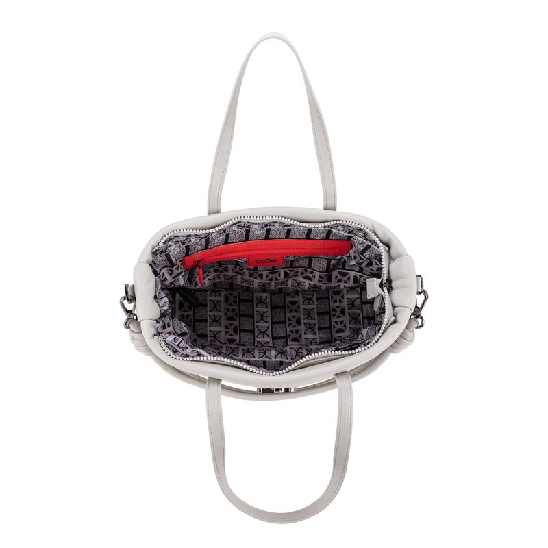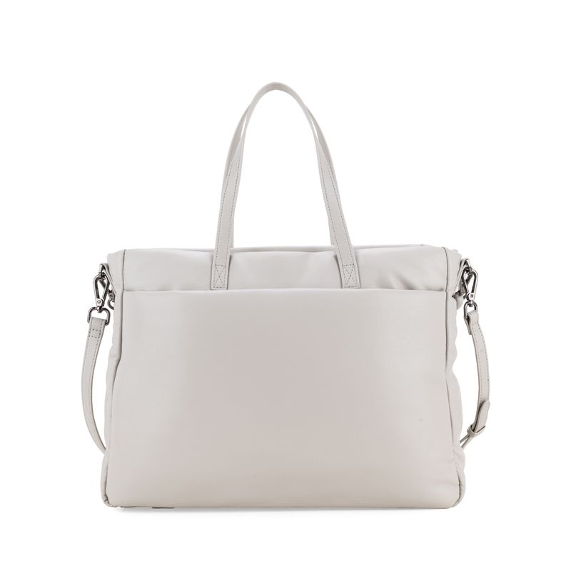 Bolso Tote hecho con material vegano apariencia piel. Cuenta con diseño acolchado de alta tendencia. Tiene herraje metálico de monograma. Asas al hombro reforzadas. Incluye un asa larga adicional ajustable y removible.