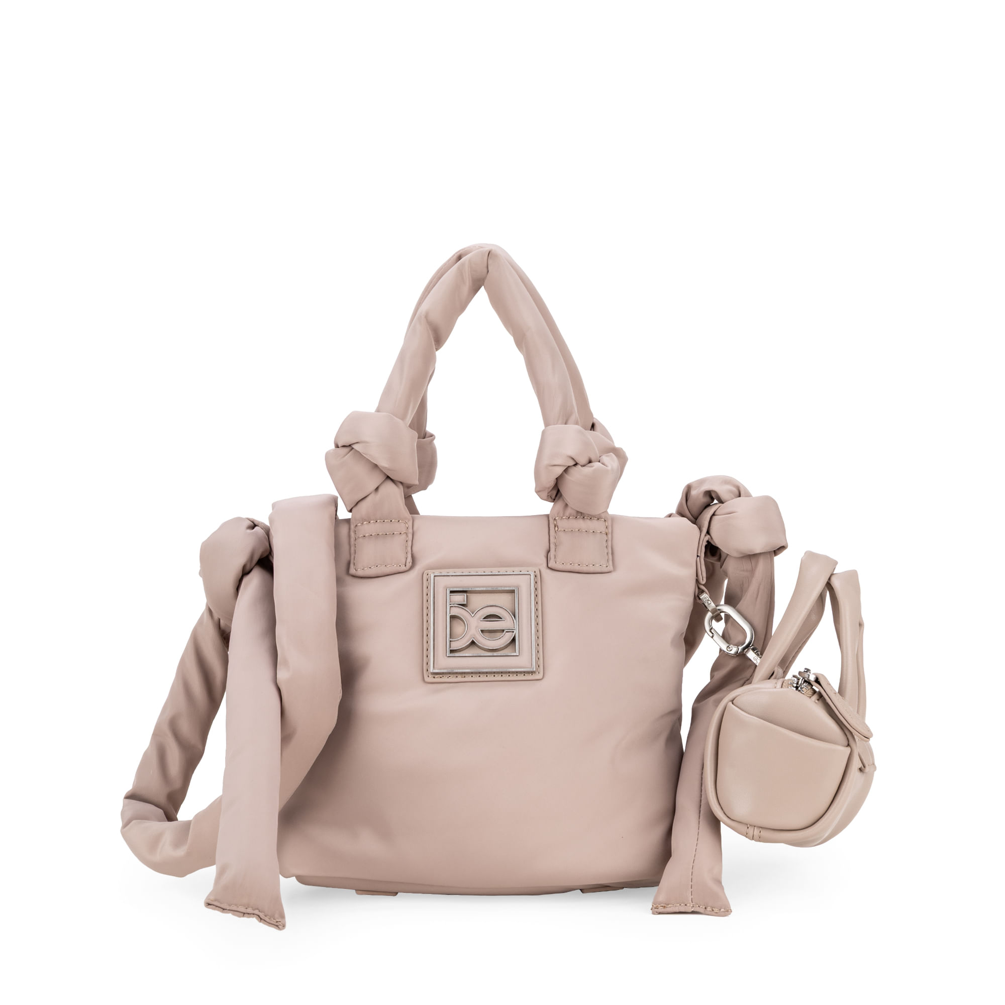 Bolso Tote hecho con material nylon. Cuenta con herraje metálico de monograma. Incluye monedero desprendible. Asa corta de mano y asa larga con detale de nudos en laterales.
