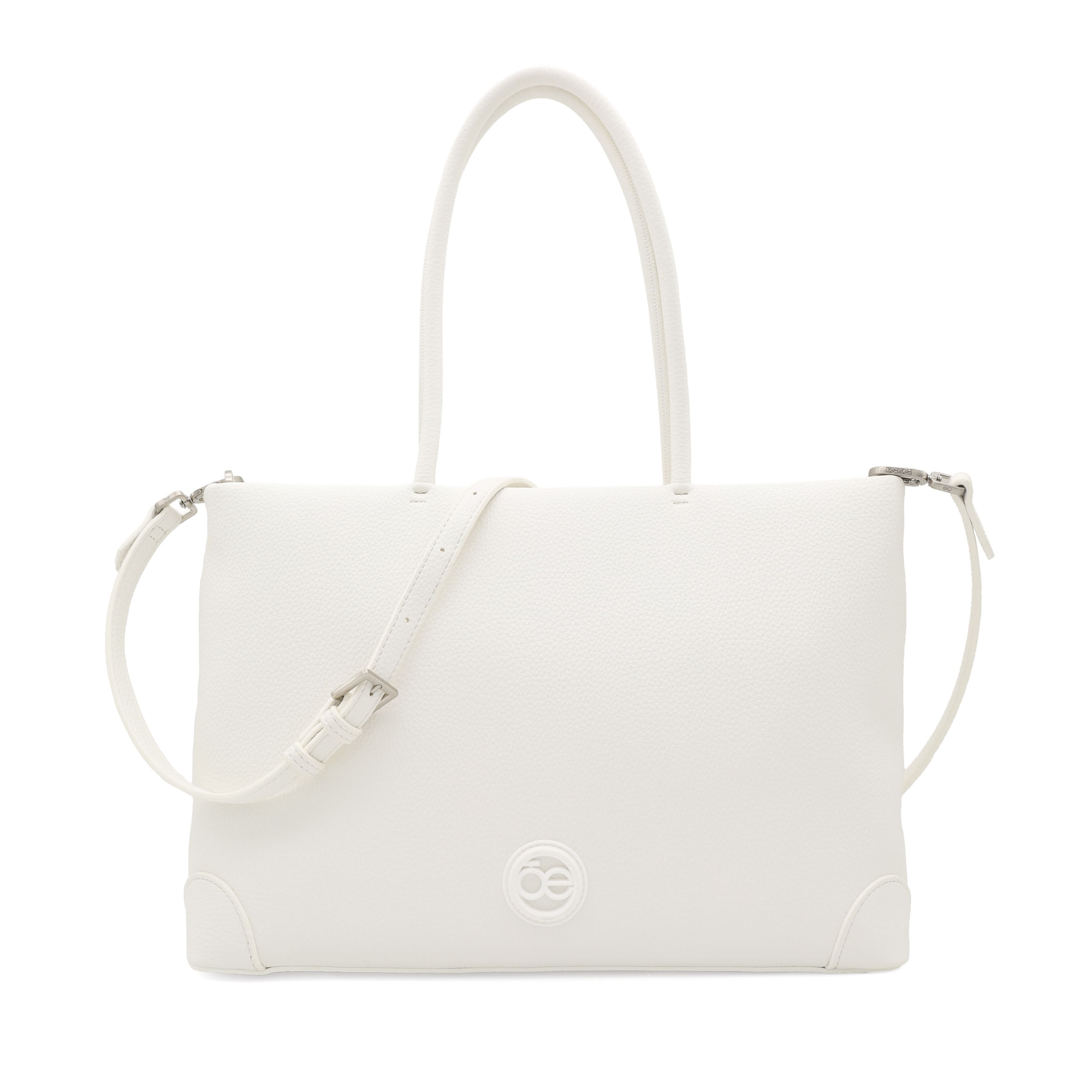Bolso Tote hecho con material vegano apariencia piel. Cuenta con cierre metálico de larga duración. Tiene rubber de monograma. Asas de hombro reforzadas. Asa larga ajustable y removible.