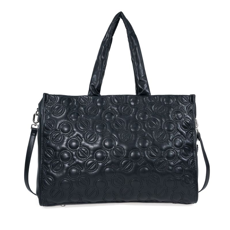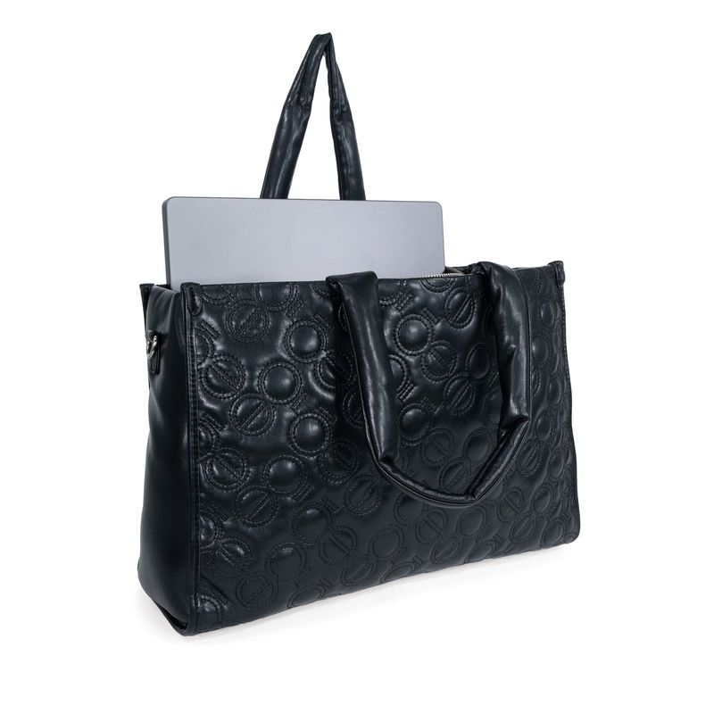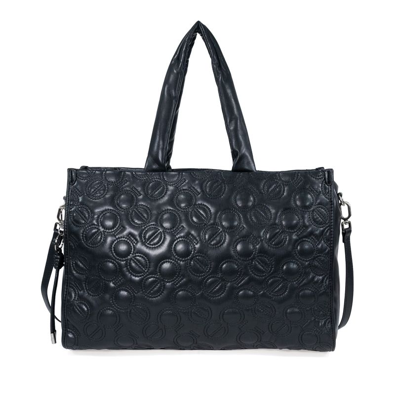 Bolsa Tote Grande Bordado De Monogramas Color Negro