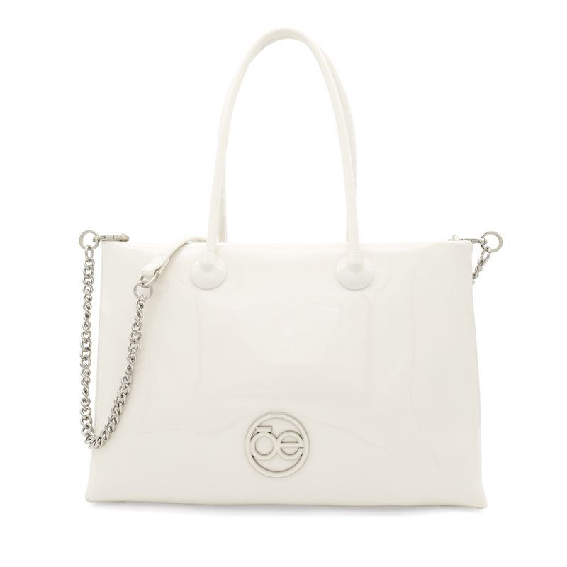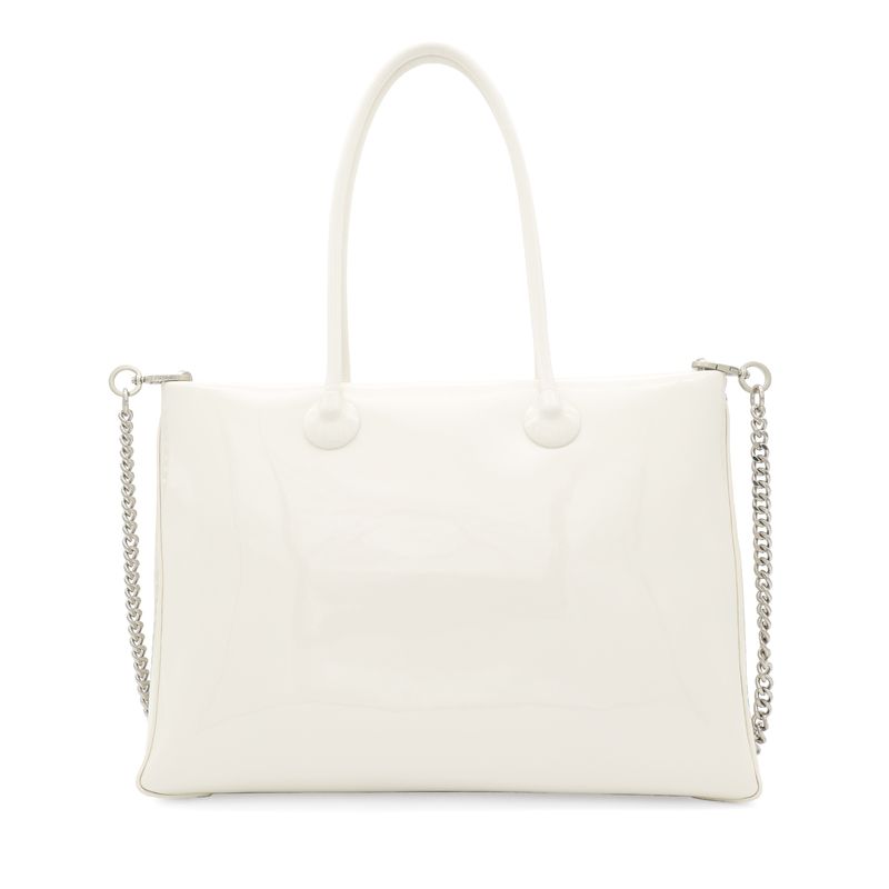 Bolsa Tote Grande Charol Asa De Cadena Color Beige