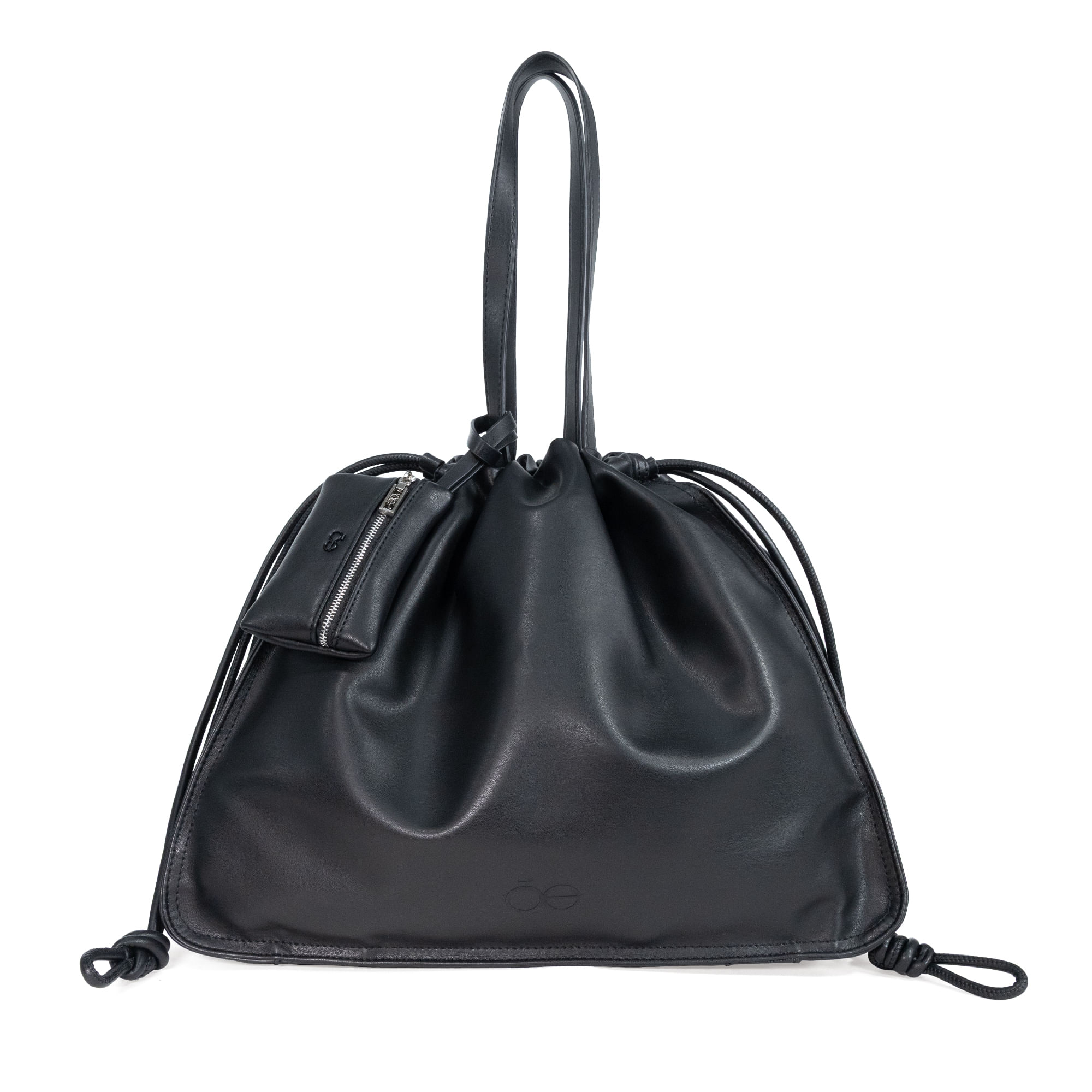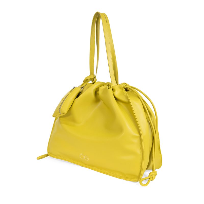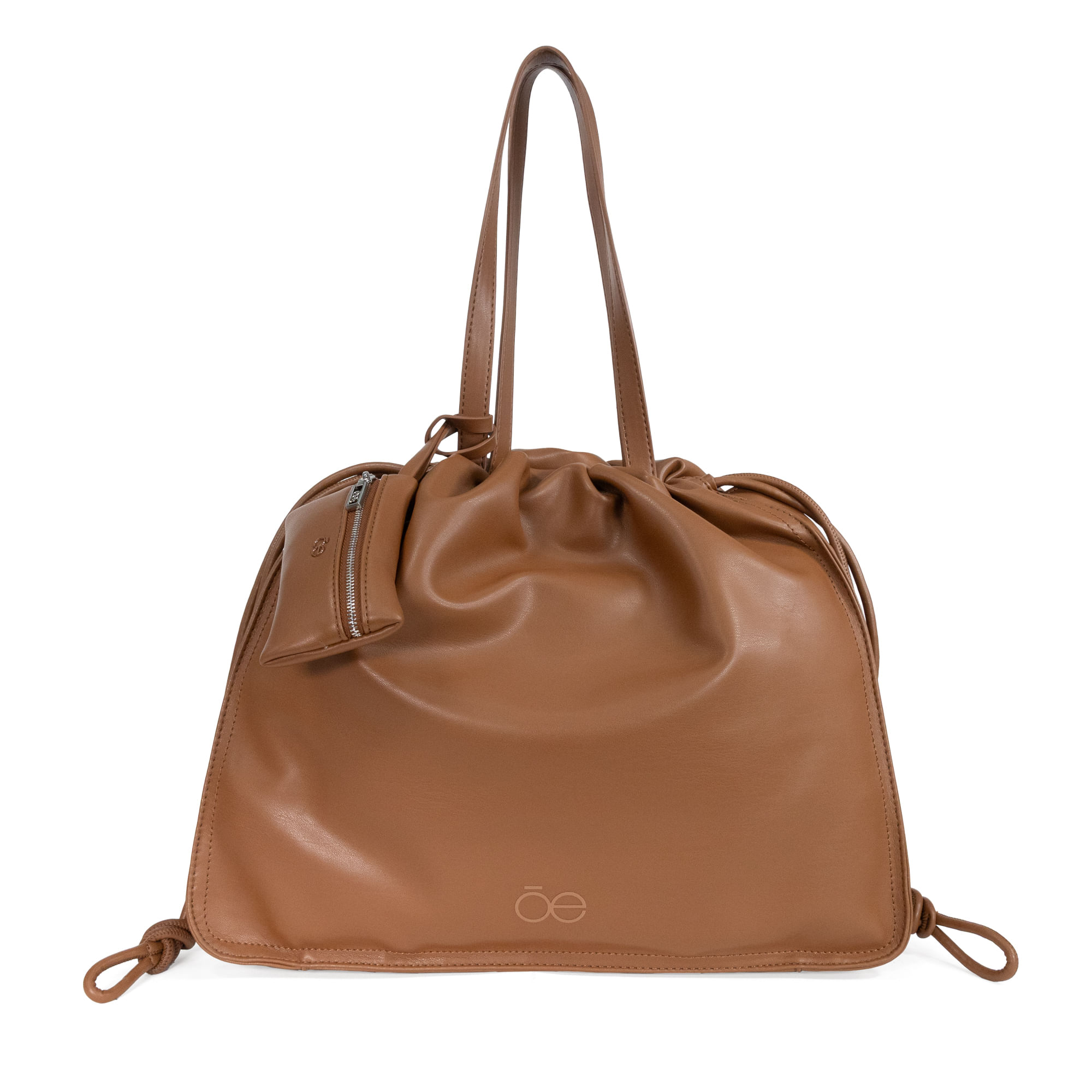 Bolso tote hecho con material vegano apariencia piel. Diseño plisado en parte superior. Jaretas Laterales ajustables. Monedero desprendible.