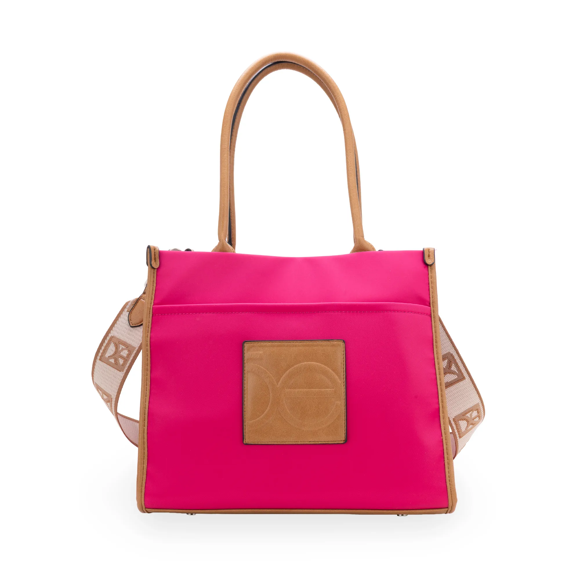 Bolso tote hecho de material textil. Cuenta con compatimento lateral de fácil acceso con broche metálico. Asa larga ajustable y desprendible. Asa de hombro. Tiene monograma en alto relieve.