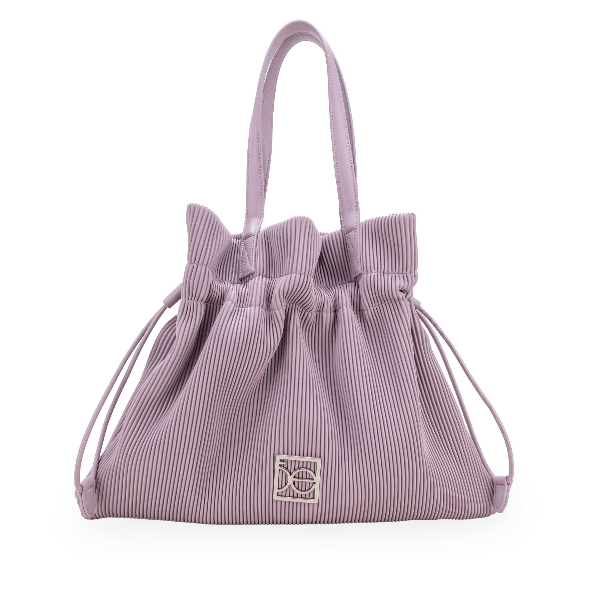 Bolso Tote hecho de material vegano. Cuenta con jareta ajustable. Broche magnético. Asa al hombro. Tiene herraje metálico de monograma.