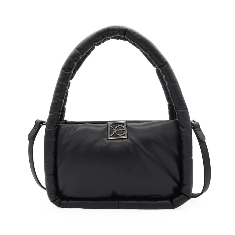 Bolso Tote hecho con material vegano apariencia piel. Cuenta con cierre metálico de larga duración. Tiene herraje metálico de monograma. Suave asa al hombro acolchada. Asa larga adicional, ajustable y removible.